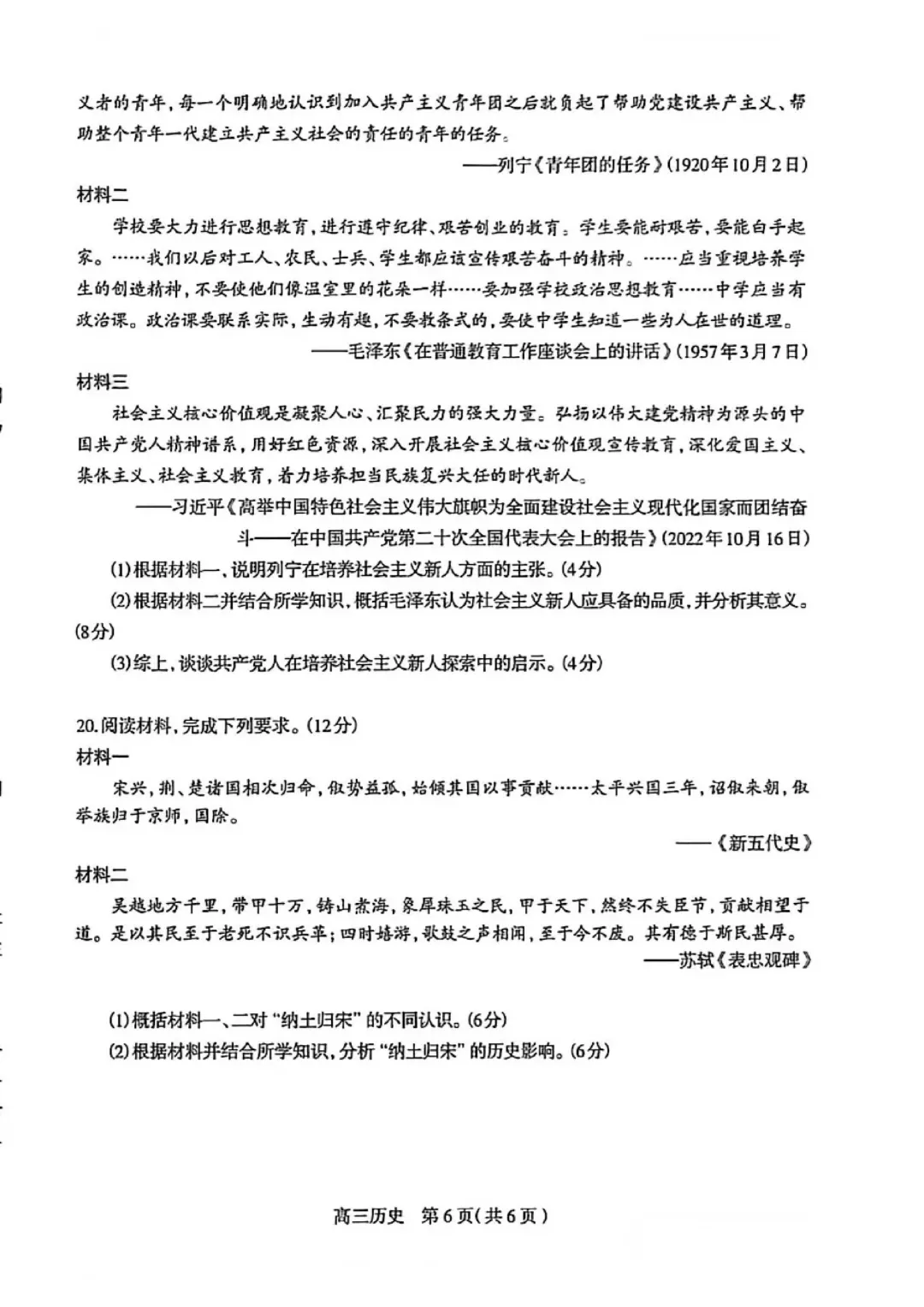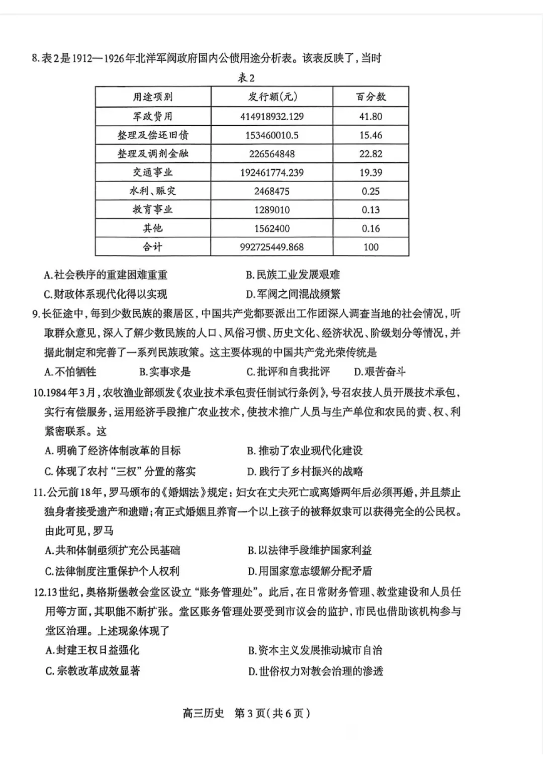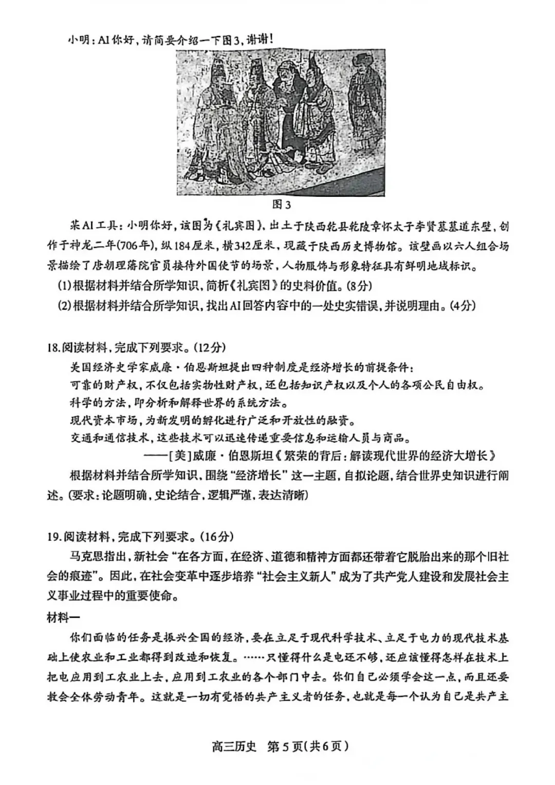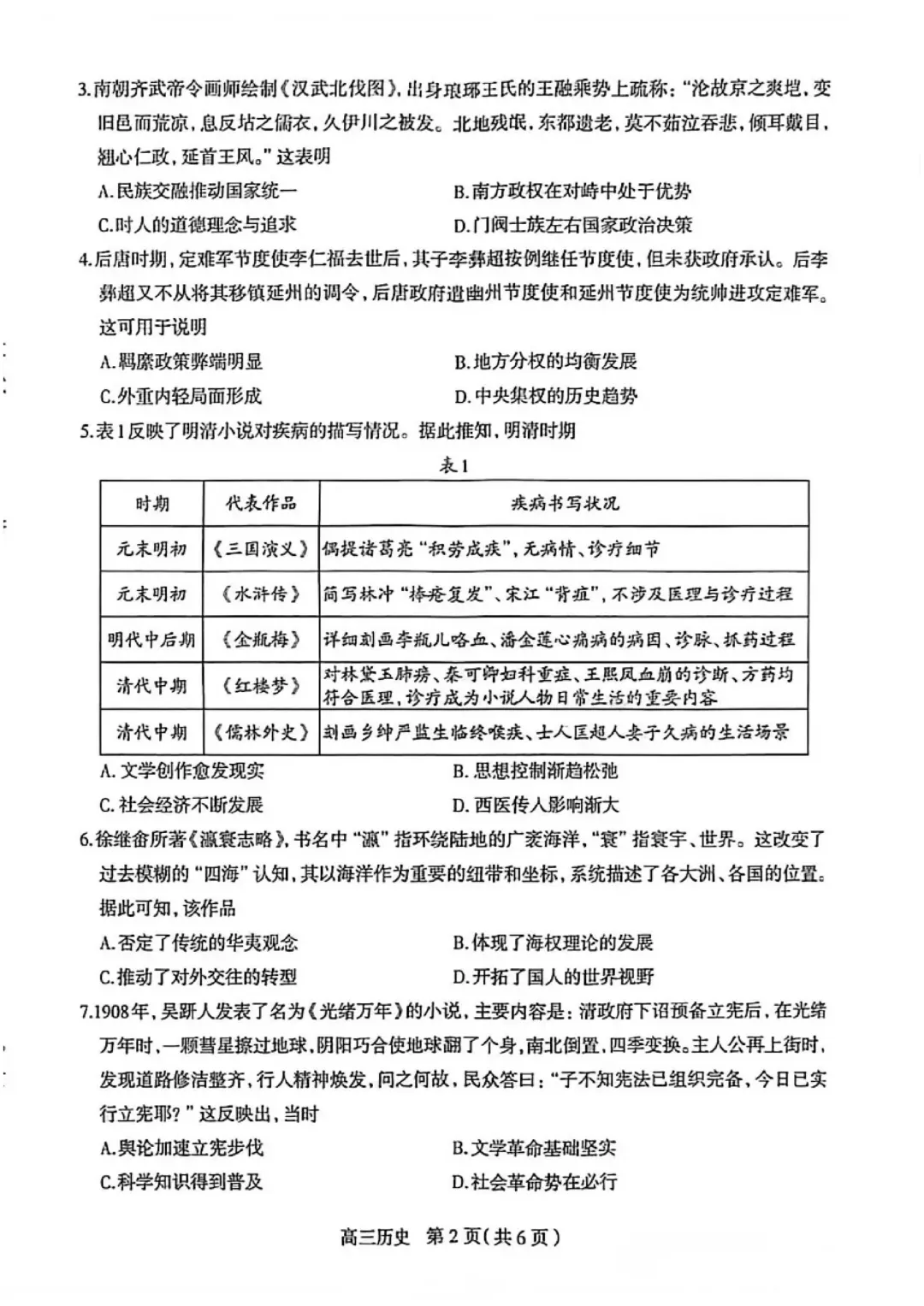 石家庄市2026届高三检测一历史试题及参考答案