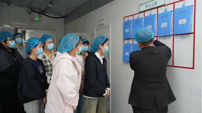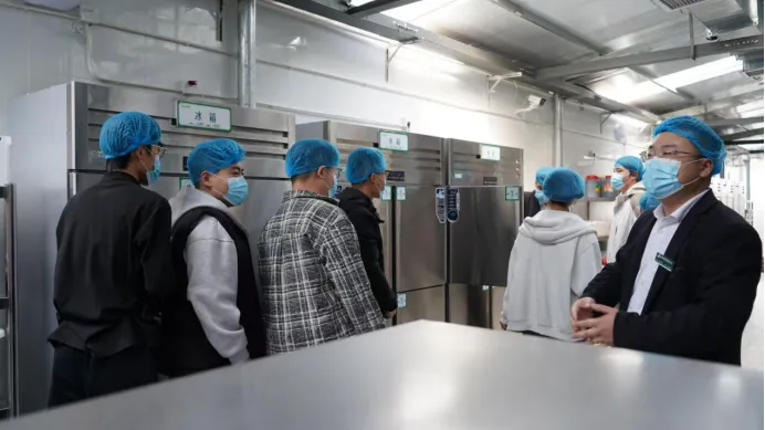 活动伊始,学院后勤保障部负责人向参与活动的师生代表介绍了本次后厨开放日的目的与流程,强调学院始终将师生饮食安全放在首位,通过常态化开展此类活动,主动接受师生监督,持续优化餐饮服务质量,全力打造让师生放心、安心、舒心的校园食堂。随后,在各食堂经理的带领下,师生代表们佩戴好一次性卫生帽、口罩,有序进入后厨区域,开启全方位参观之旅。