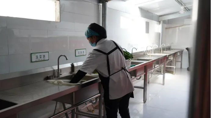 在烹饪操作间,干净整洁的灶台、规范操作的厨师、有序摆放的半成品,让师生直观感受到菜品制作的全过程;餐具消毒间内,工作人员严格执行“一洗、二清、三消毒、四保洁”流程,各类餐具经过高温消毒后密封存放,杜绝卫生隐患;食品留样区里,每餐每类菜品均按标准足量留样,密封保存于专用留样柜中,清晰标注留样日期、餐次与责任人,严格落实48小时留样制度,全方位守护饮食安全。