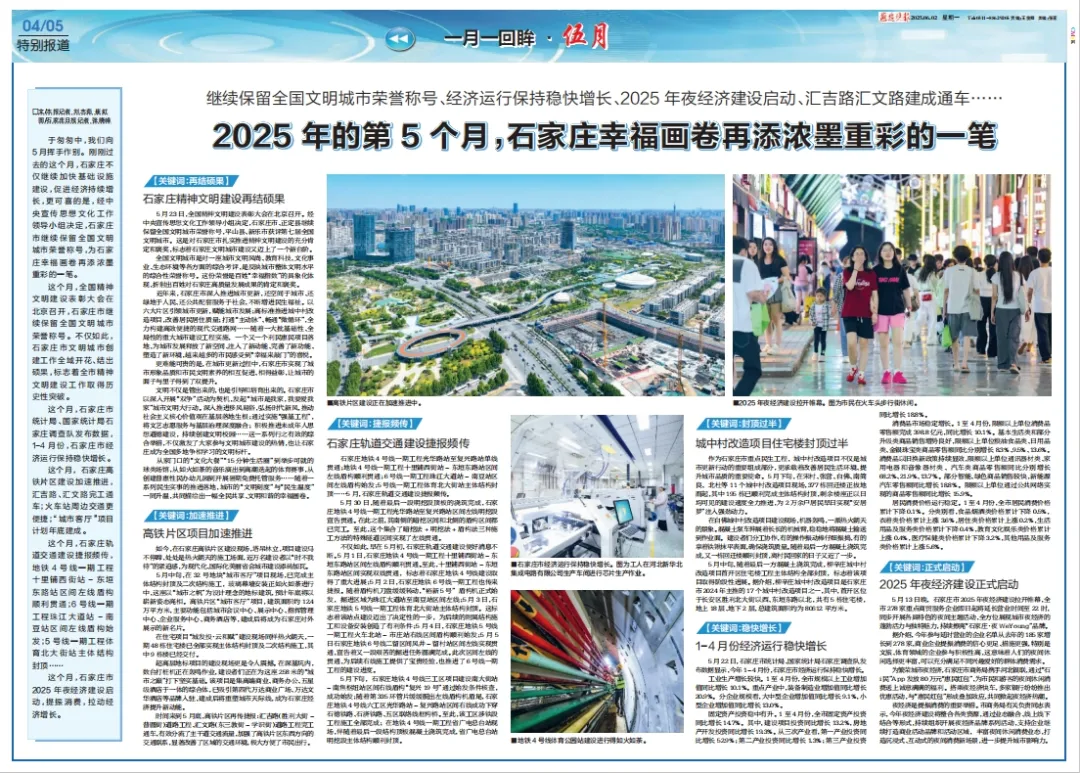 于匆匆中,我们向5月挥手作别。刚刚过去的这个月,石家庄不仅继续加快基础设施建设,促进经济持续增长,更可喜的是,经中央宣传思想文化工作领导小组决定,石家庄市继续保留全国文明城市荣誉称号,为石家庄幸福画卷再添浓墨重彩的一笔。