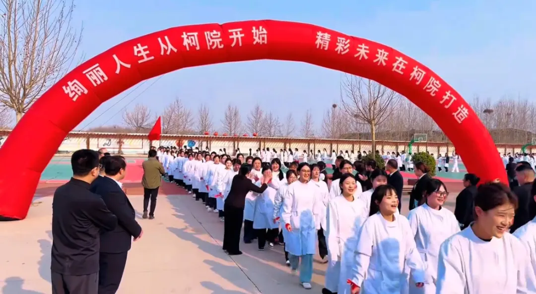 门启新程踏征途,口号嘹亮向未来。在激昂的战鼓音乐中,出征仪式迎来高潮。各班学子以班级为方阵列队集结,依次昂首走过希望之门----拱门,同时高喊出征口号”披荆斩棘 不负使命 白衣执甲 此战必胜“,”医路向前 使命在肩 明日柯校 以我为荣“,是学子们对梦想的执着追求,更是对即将到来的考试的自信宣言。老师们夹道而立,为学子们击掌助威。温暖的鼓励、坚定的目光,成为学子们前行路上最坚实的支撑。