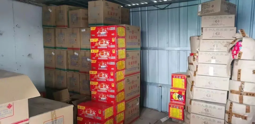 说完后,王某从一堆货物后面搬出13箱烟花爆竹,其中包括9箱精品炮王,4箱惊天雷。见状,民警立即告知王某非法储存烟花爆竹属于违法行为,烟花爆竹与其他货物同时堆放在一起,安全隐患极大。王某表示,愿意承担处罚,为自己的错误买单。