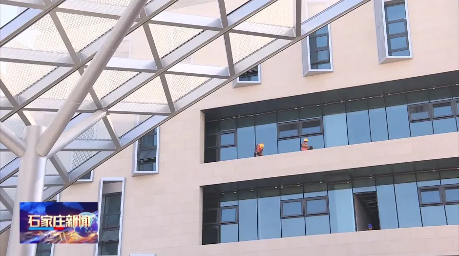 石家庄城发投集团所属住建集团石建公司第一分公司副总经理 孙全顺:目前,项目正处于室内外装修施工阶段,外墙保温及幕墙工程、室外管网、室内机电安装基本完成;室内正在进行吊顶、墙面、地面等面层施工;室外景观道路、园林绿化正在施工。