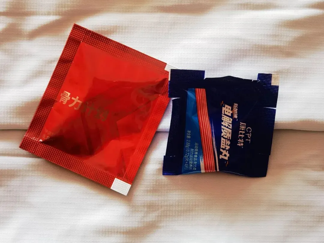 后来我摸索出一个办法:赛前把盐丸的包装三边,都剪出一个小缺口。就算手上有汗,也能轻松撕开,再也不用为了一颗盐丸手忙脚乱。细节虽小,却能让赛中补给更顺畅,不耽误分毫时间。