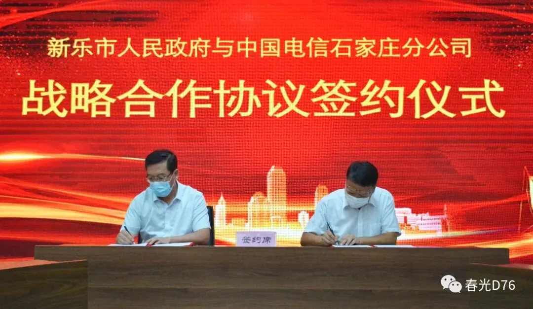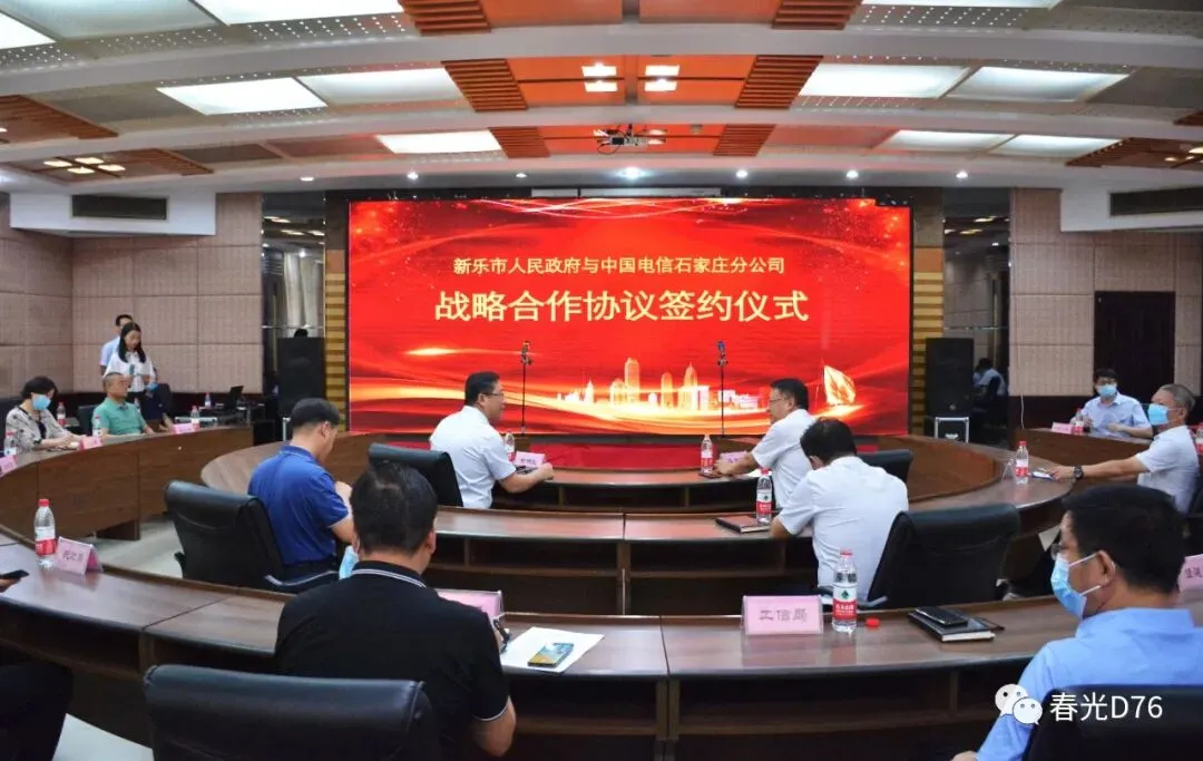 7月24日,新乐市政府与中国电信石家庄分公司战略合作协议签约仪式在新乐宾馆第一会议室举行。市领导李明政、李伟凡、尚智勇以及孙玉胜等中国电信石家庄分公司领导出席会议。会上,新乐市政府市长李明政与中国电信石家庄分公司总经理孙玉胜代表合作双方签署战略合作协议。此次战略合作作为推动新乐市经济发展再上新台阶的一项重要举措,旨在发挥双方发展优势及经验,基于5G技术应用、云计算、物联网、AI、大数据、系统集成等方面开展合作,实现共同发展、互补互赢。