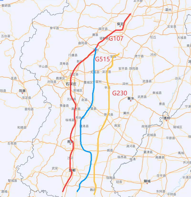 其实这条道路,最早就是大家都熟悉的定魏线,即定州到魏县,但是随着国家道路名称的调整,安新线和巨鹿以南的定魏线,组成了国道230。
