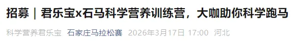 基普乔格将于3月底飞抵石家庄,核心参与2026年3月29日石马的发枪仪式,为3.5万名参赛跑者助阵,同时还将参与一系列品牌互动活动,包括与励建安院士、央视主持人朱迅及君乐宝董事长魏立华、以及国家队康复师于顺成一同参与早餐跑,分享跑步故事,与跑者近距离交流。