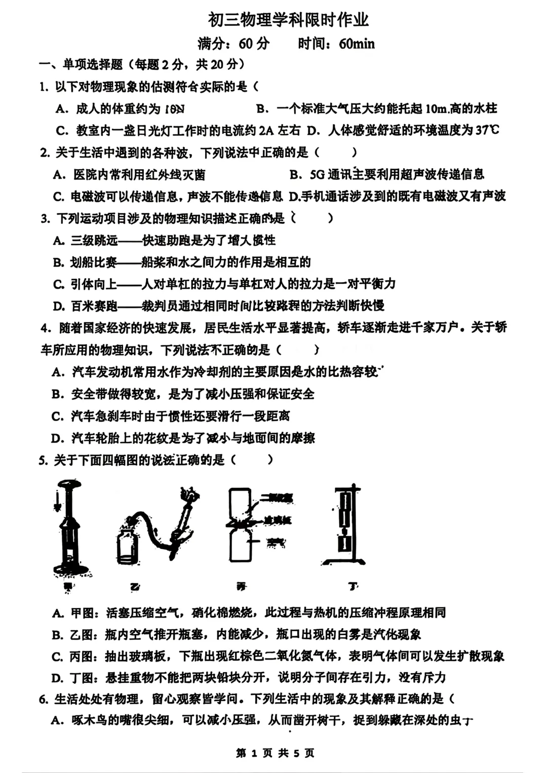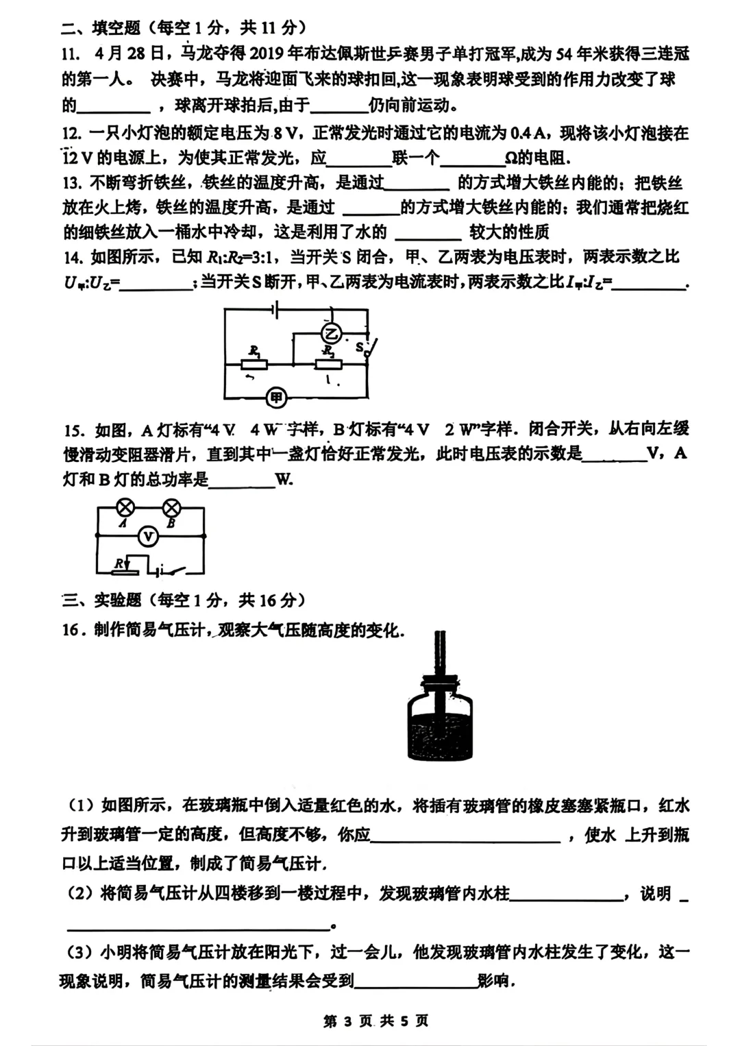 >【中考物理模拟卷】2026年石家庄48中3月模拟物理试卷