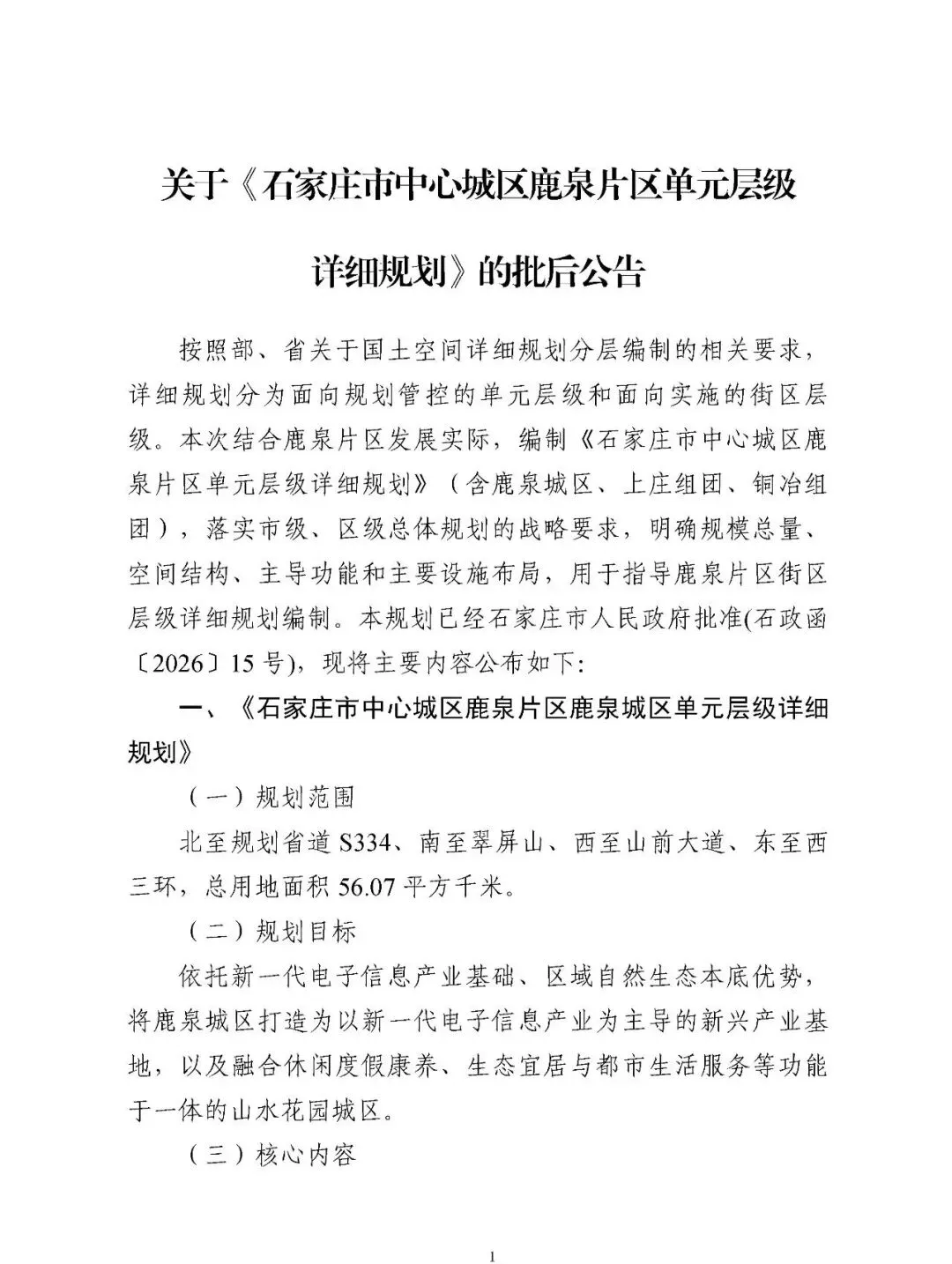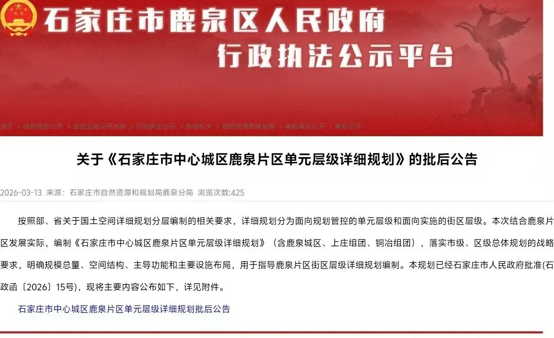 《石家庄市中心城区鹿泉片区单元层级详细规划》