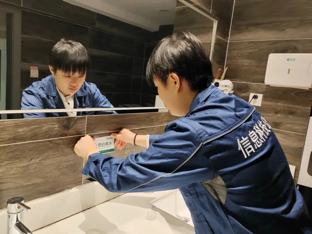 为让节水理念深入人心,运维处在卫生间、茶水间等用水点位张贴节水标语,时刻提醒全体职工养成节水习惯;同时,在办公区域显眼位置张贴主题宣传海报,普及国家水网建设相关知识、节水小技巧,引导全体职工树立每一滴水都弥足珍贵的节水理念,自觉践行节水行动,形成人人关心节水、人人参与节水的良好氛围。