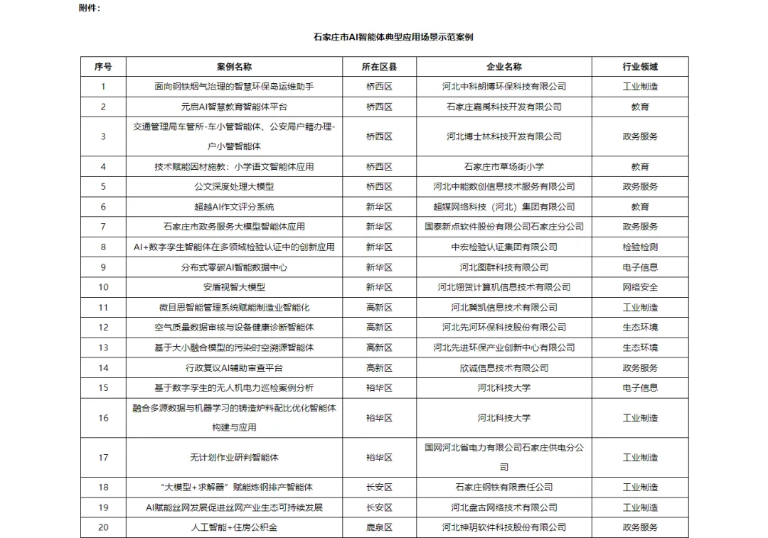 【石家庄市】石家庄市AI智能体典型应用场景示范案例认定清单公示