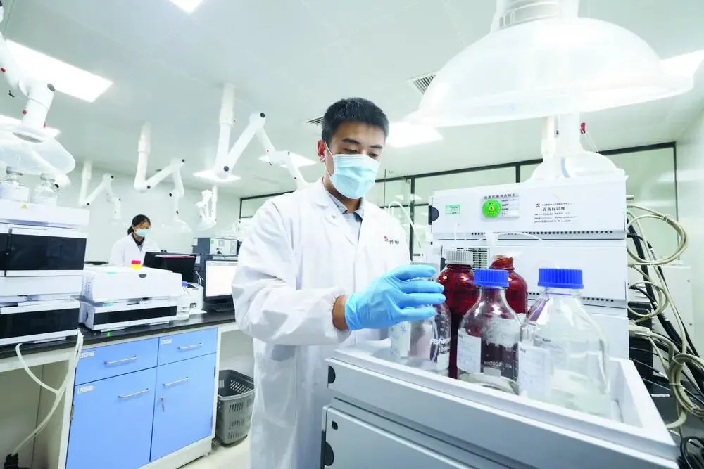 研发人员在石药集团药物实验室工作。