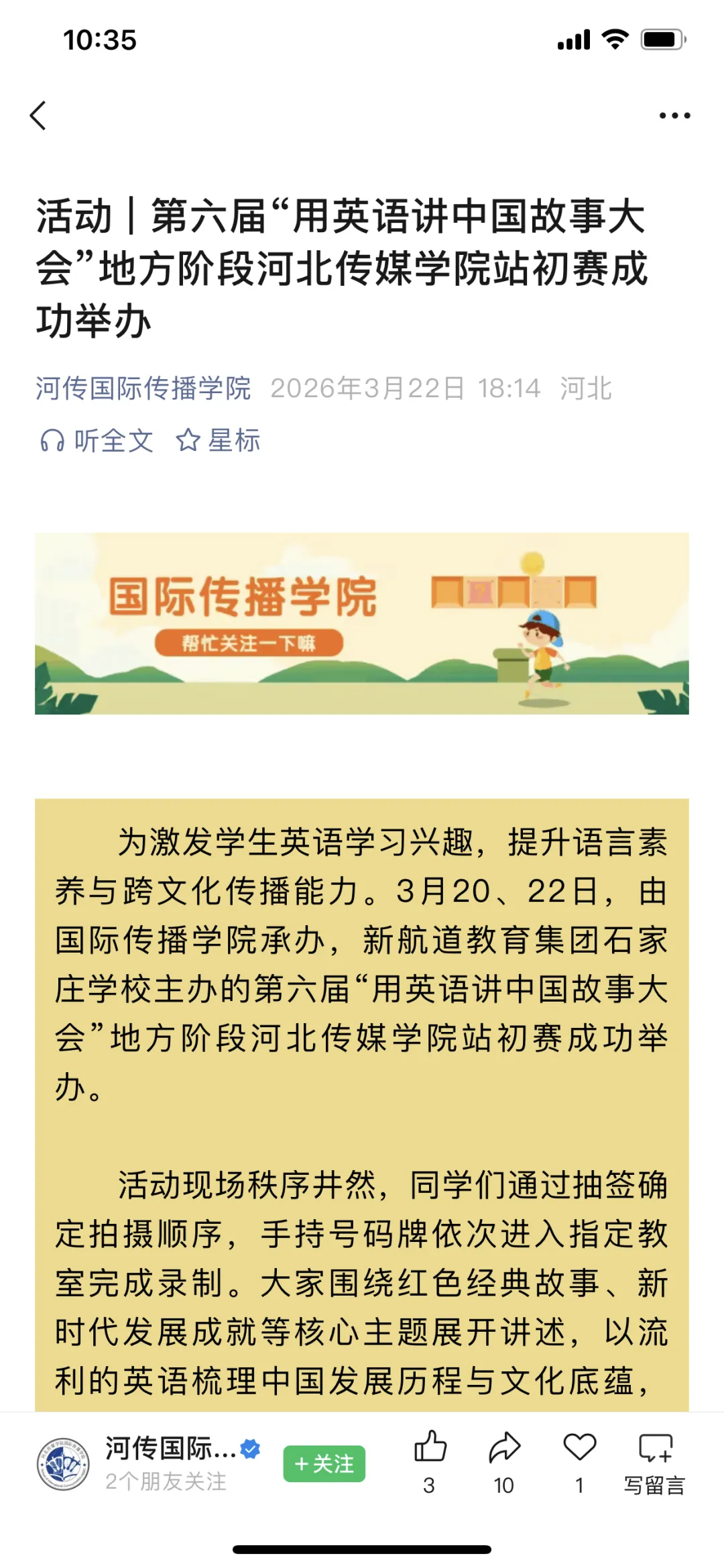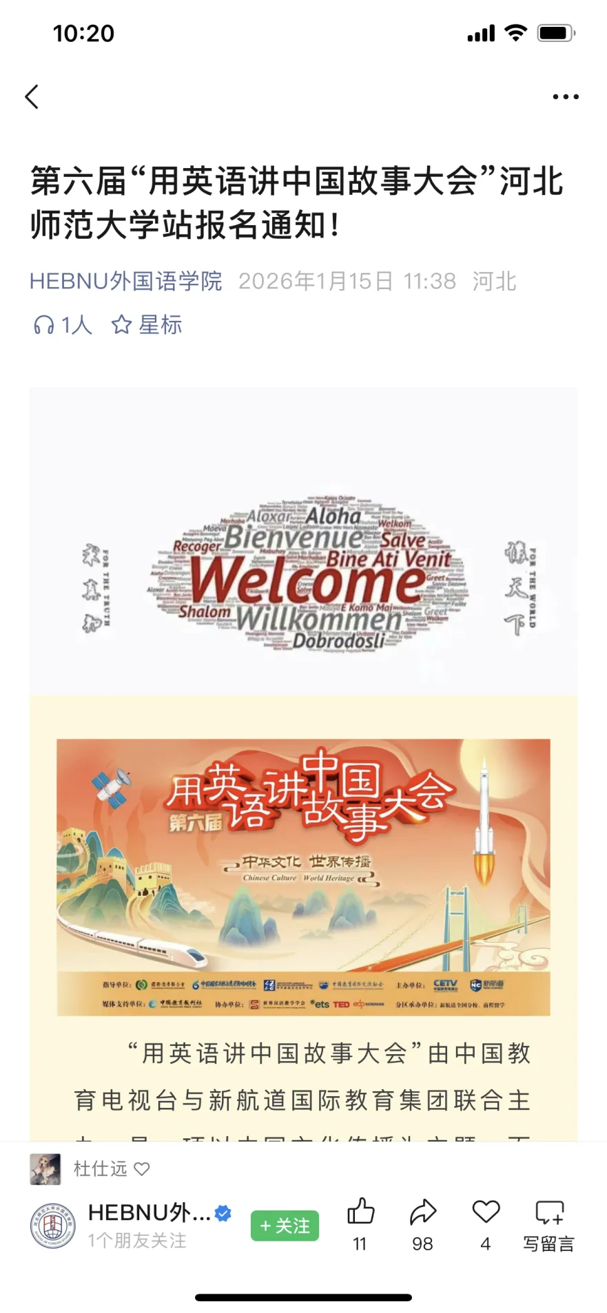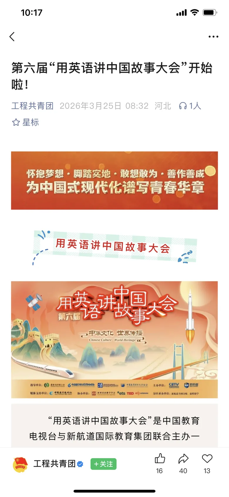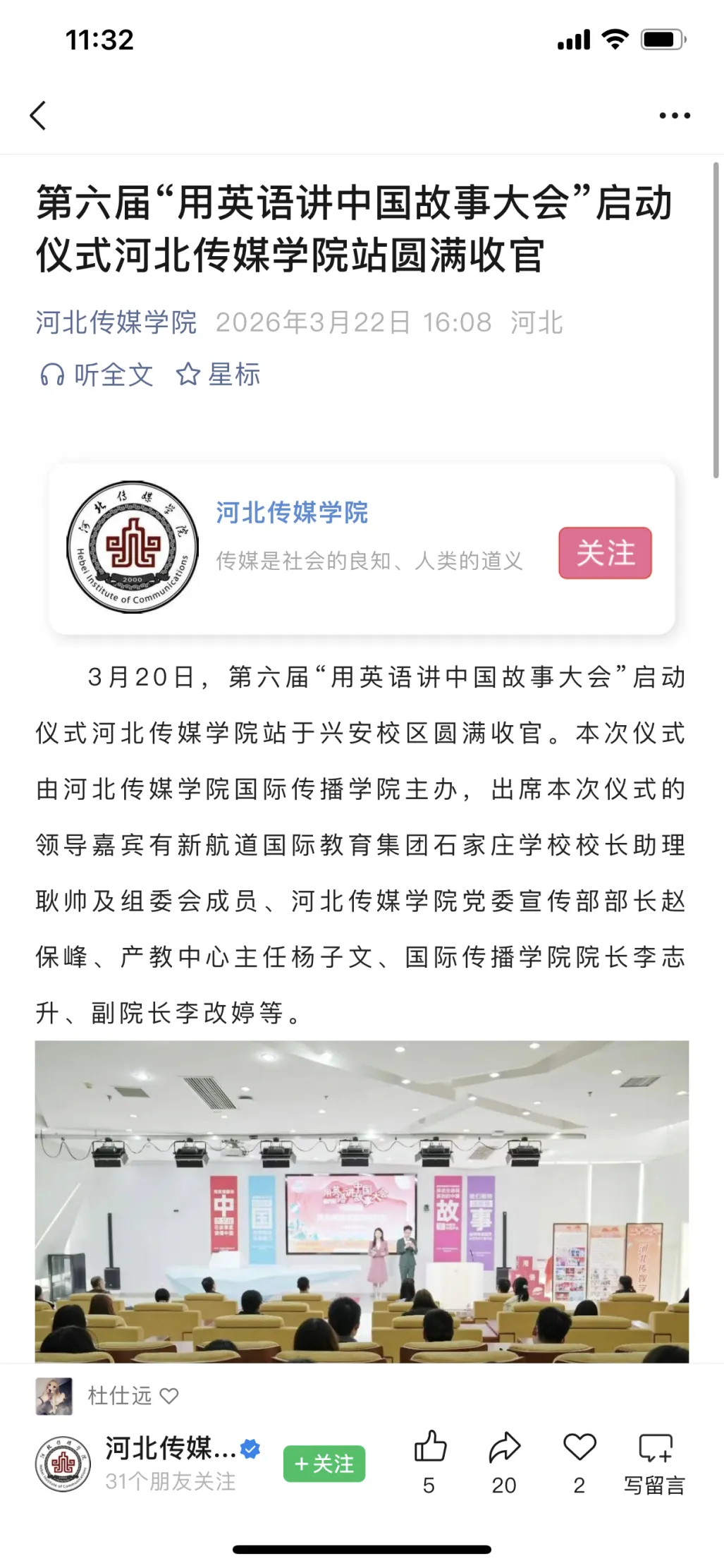 多位参赛选手在接受采访时表示,本次活动为青年搭建了跨文化表达的优质平台,在用英语诠释燕赵文脉的过程中,自身对本土文化的认同感与自豪感不断提升,进一步筑牢了文化自信根基。