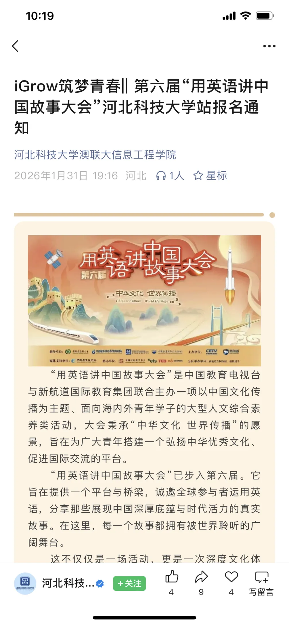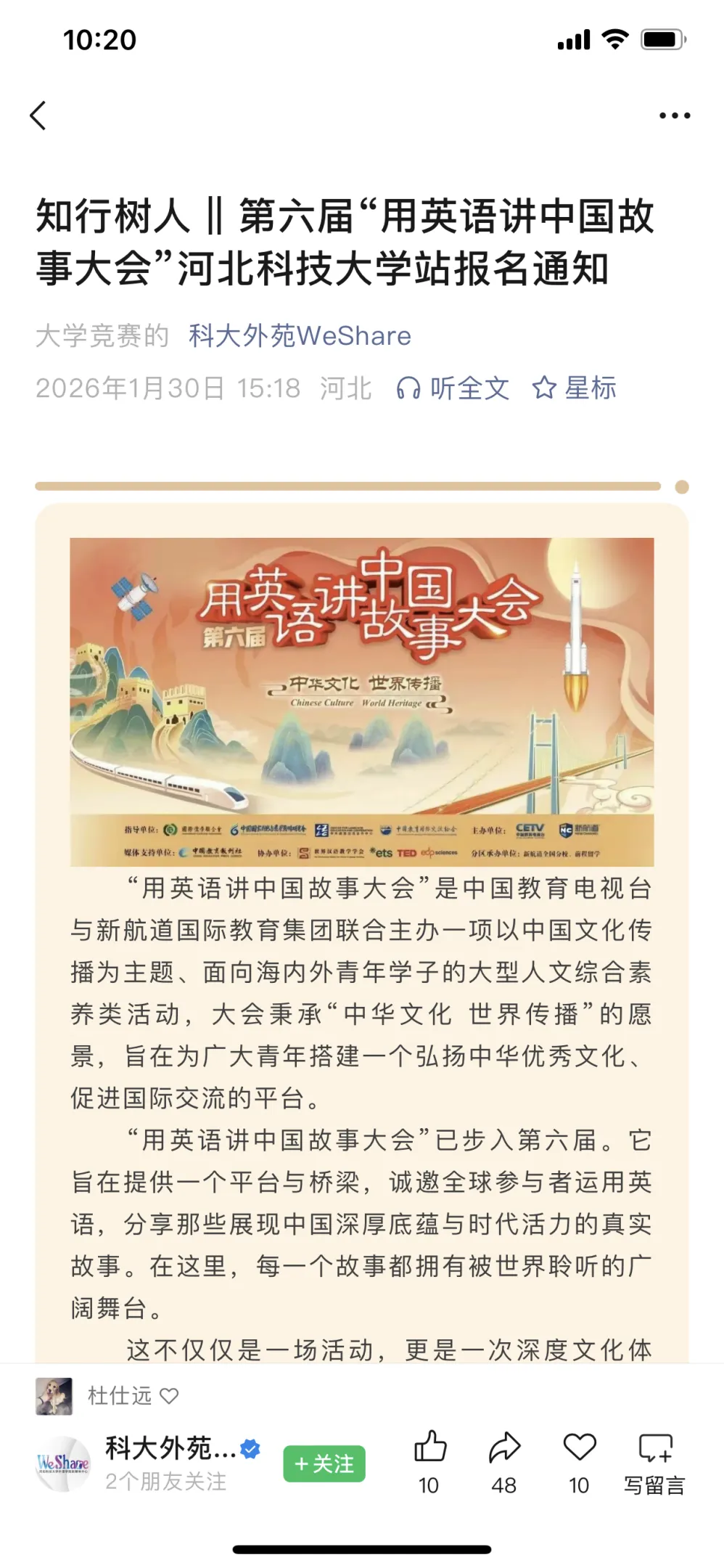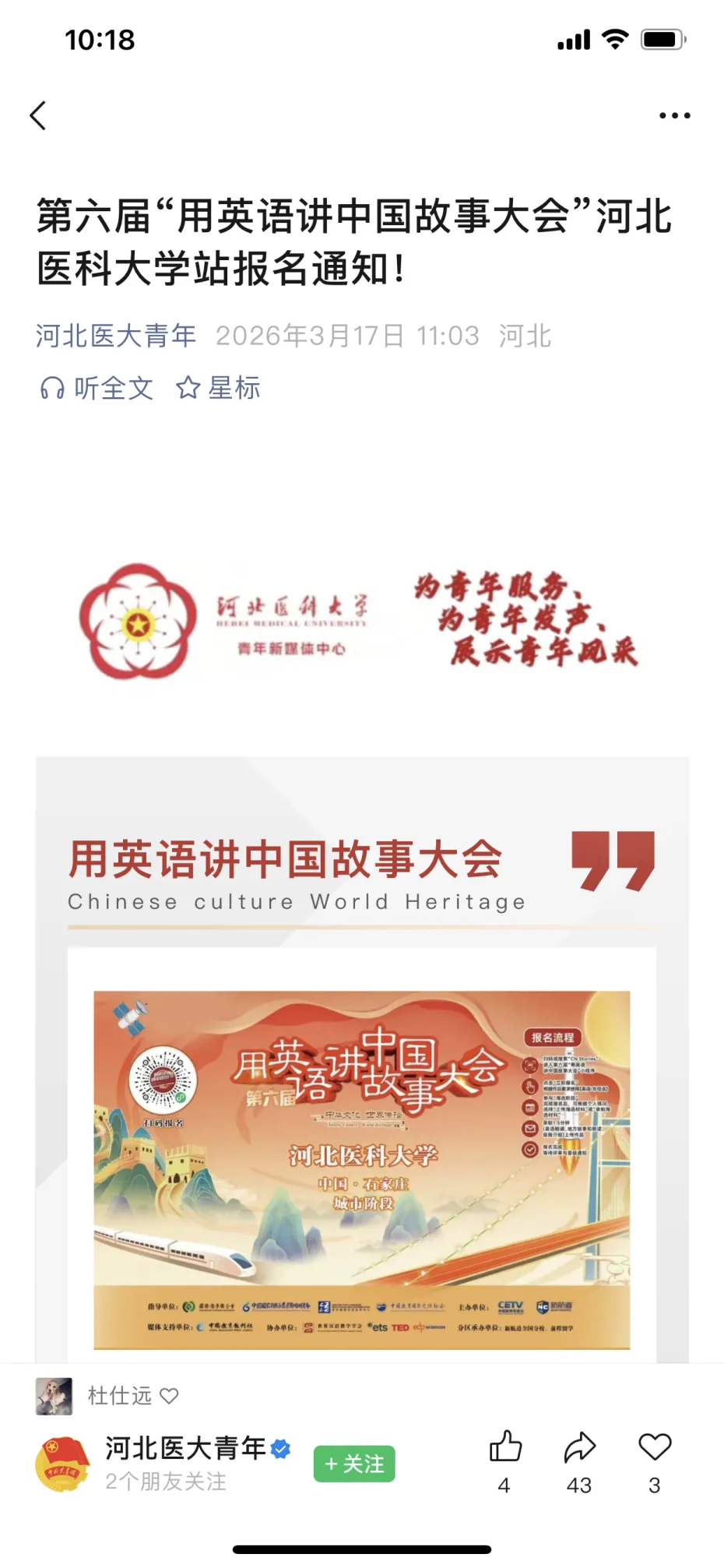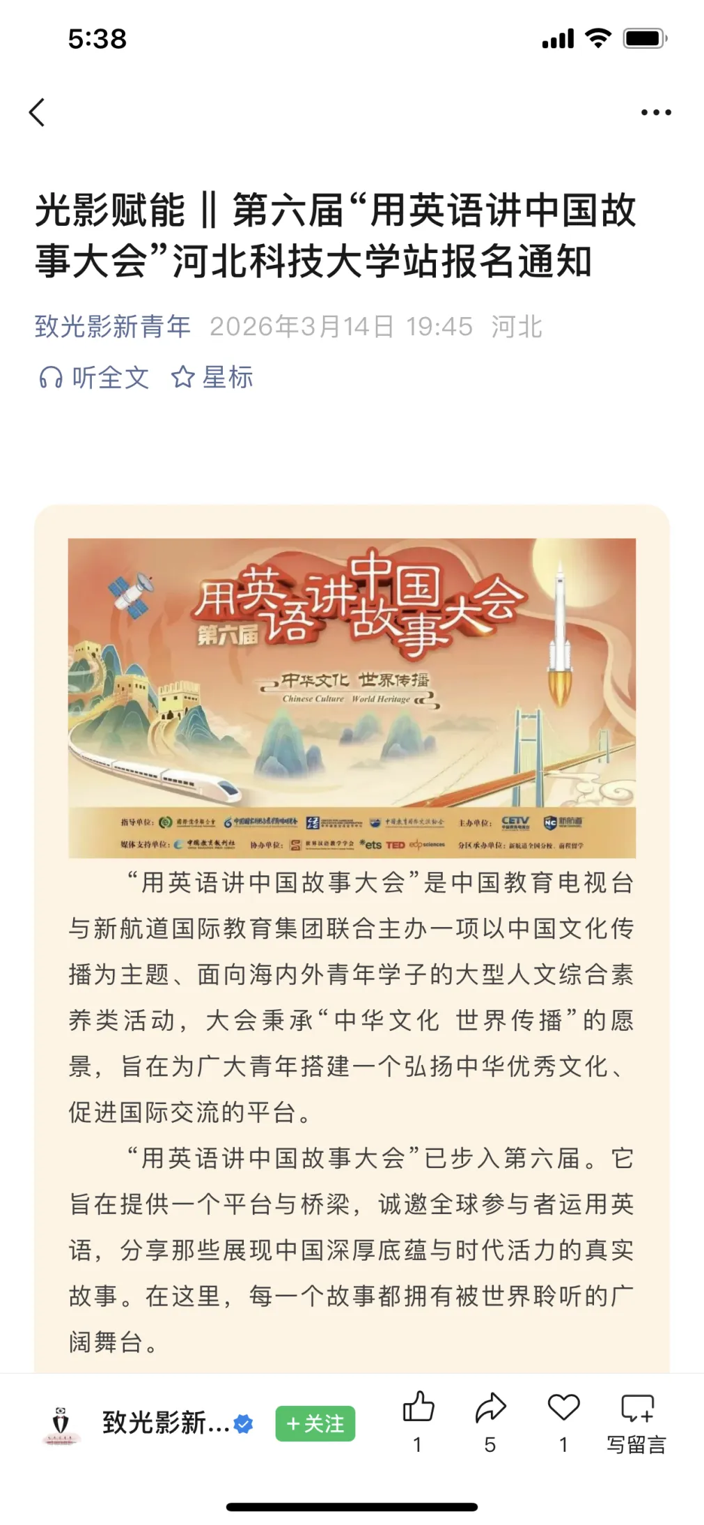 多位参赛选手在接受采访时表示,本次活动为青年搭建了跨文化表达的优质平台,在用英语诠释燕赵文脉的过程中,自身对本土文化的认同感与自豪感不断提升,进一步筑牢了文化自信根基。