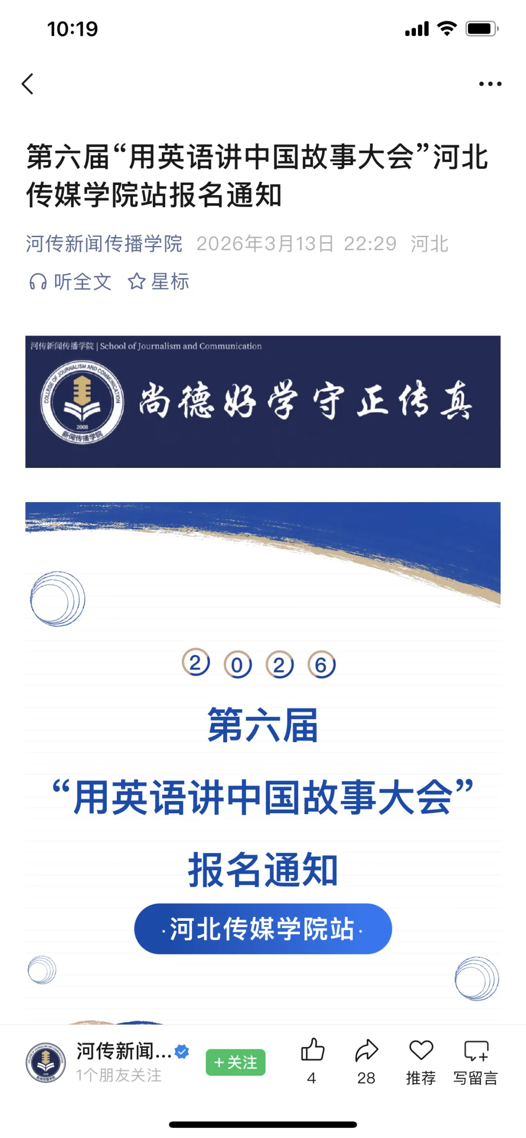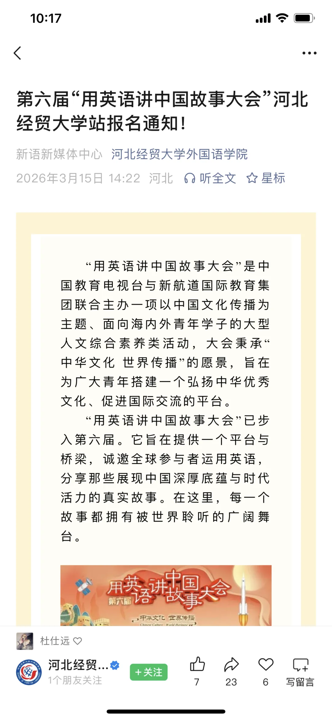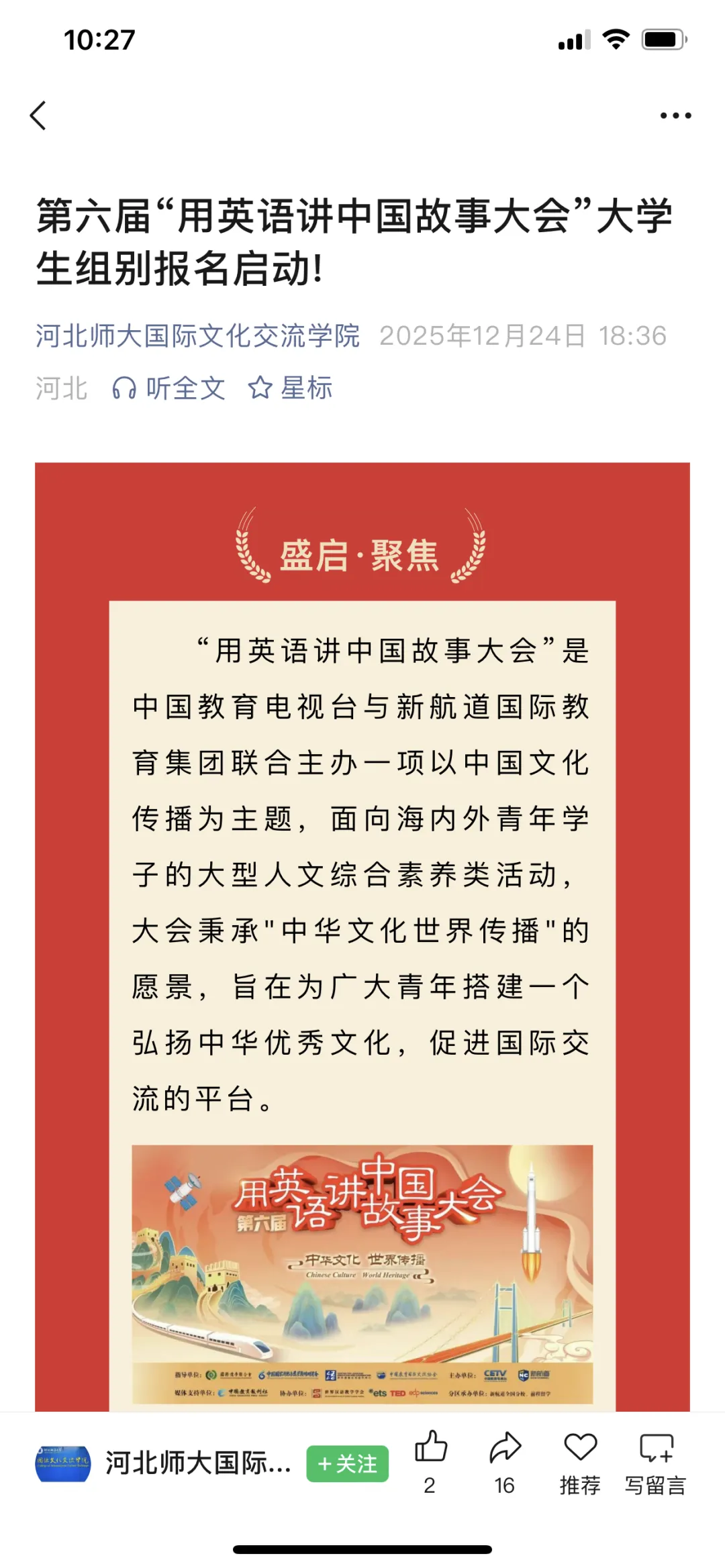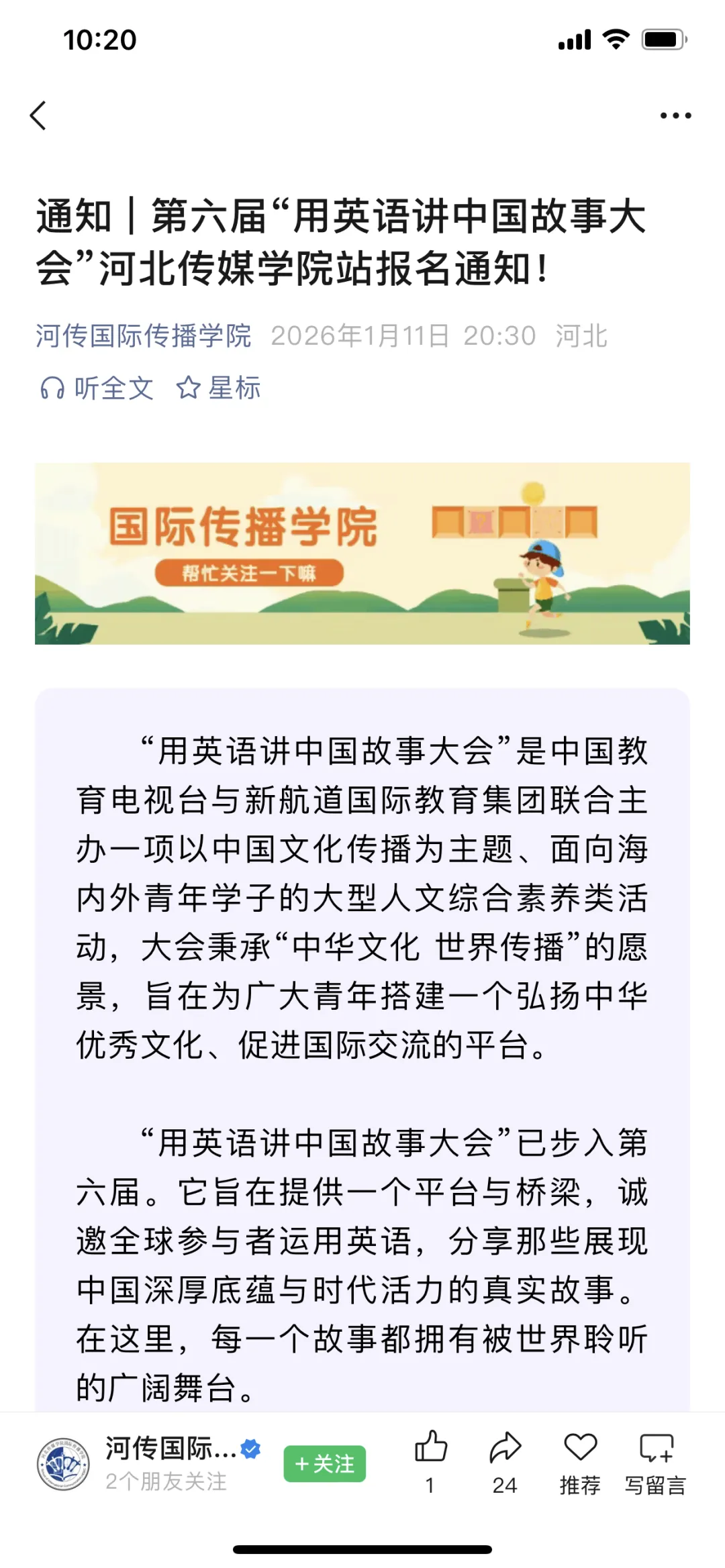 多位参赛选手在接受采访时表示,本次活动为青年搭建了跨文化表达的优质平台,在用英语诠释燕赵文脉的过程中,自身对本土文化的认同感与自豪感不断提升,进一步筑牢了文化自信根基。