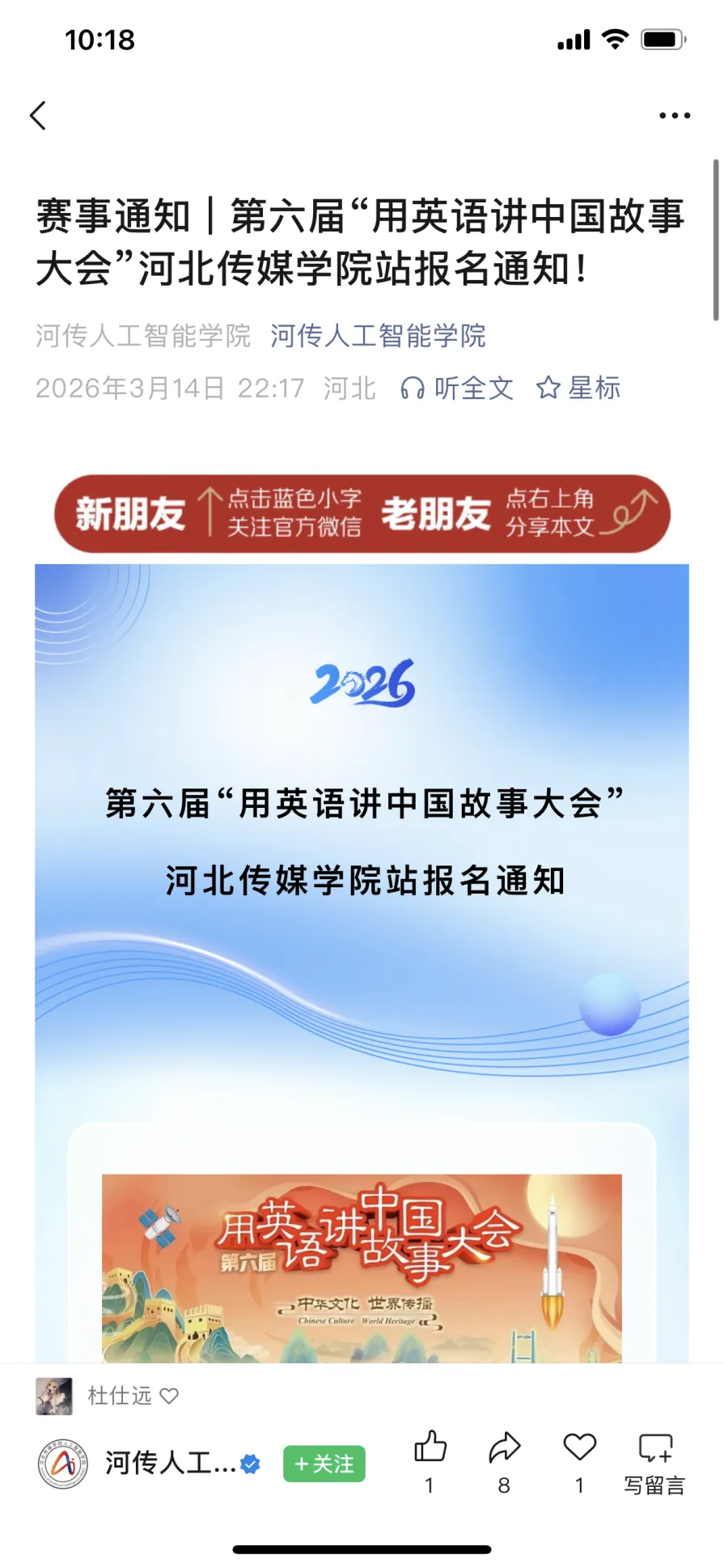学生们积极报名参加此次活动,展现出极大的参与热情和提升跨文化沟通能力的强烈意愿。在筹备过程中,他们精心选取故事主题,反复练习语言表达,力求以生动的形式向世界展现中华文化的独特魅力。