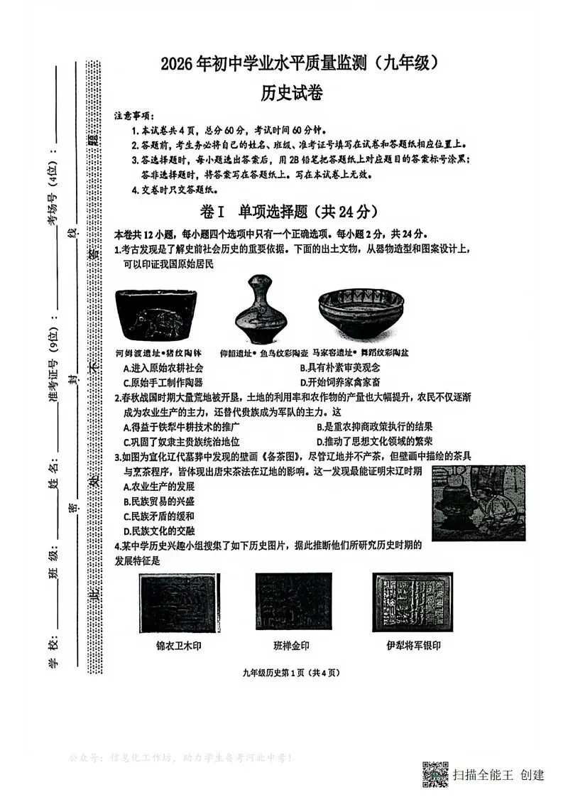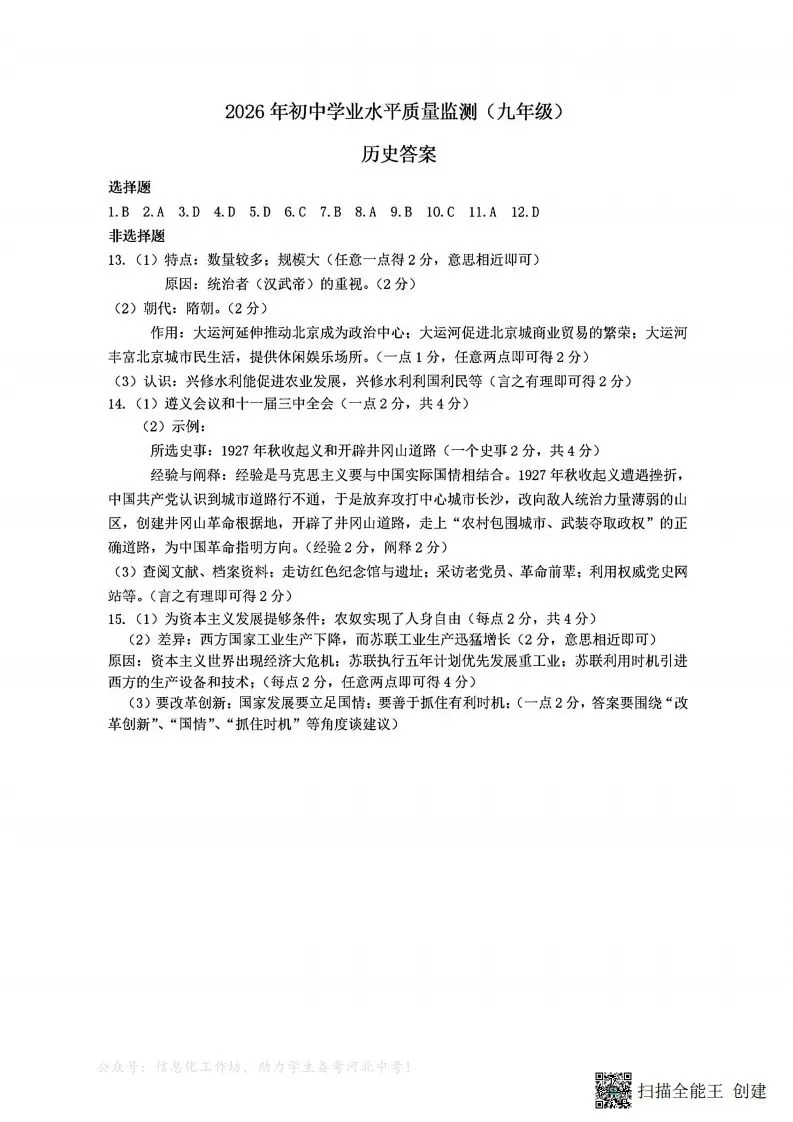 (一)夸克网盘分享了「【0327】2026年3月石家庄桥西区初中学业水平质量监测九年级历史+答案」,链接:https://pan.quark.cn/s/262197cbc0a0