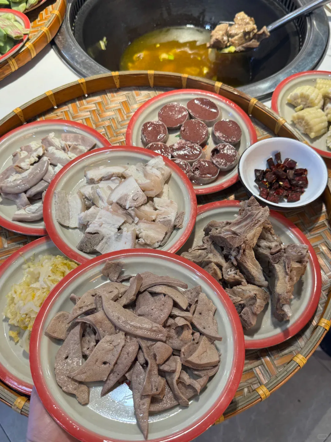 骨汤慢火炖至浓稠,让五花肉、血肠、酸菜充分融合,猪肉香、酸菜鲜、血肠嫩交织在一起,鲜香味直穿鼻尖。满满一大盆端上来,分量足到惊人,3个人都吃不完,就着大米饭,一口汤一口菜,暖到胃里,解腻又下饭,秋冬吃再合适不过,春夏吃也完全不觉得厚重。