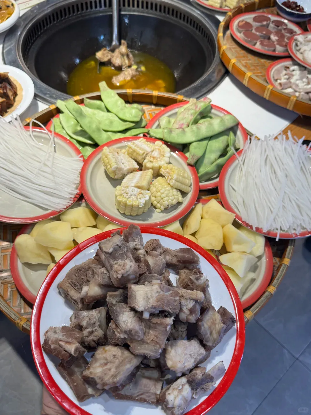 东北一锅出:玉米、土豆、豆角搭配鲜香排骨,慢炖至软烂入味,玉米香甜、土豆粉糯、豆角吸饱汤汁,每一口都是家的味道,碳水爱好者直接狂喜;