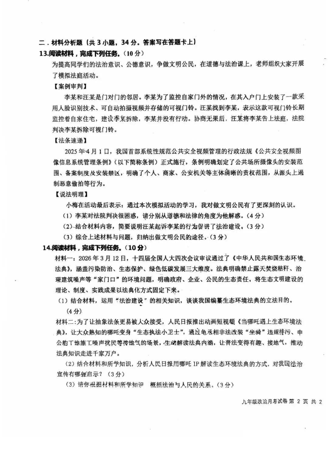 >2026年中考石家庄桥西区一模物理