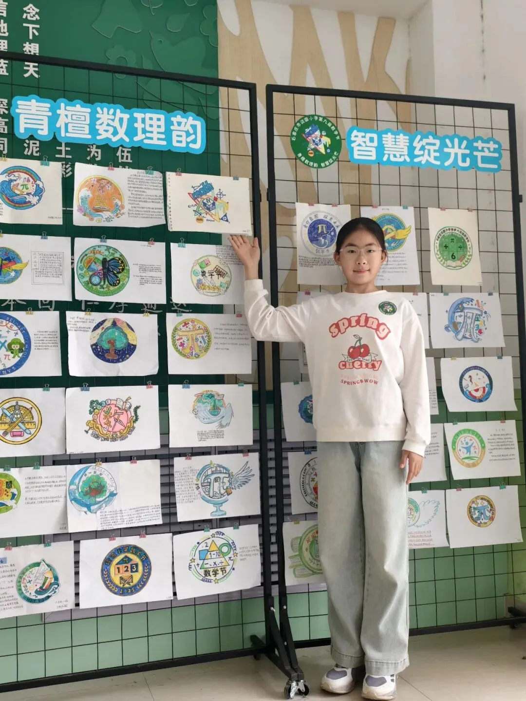 本届数学节特别面向六年级学子开展节徽手绘征集活动,同学们以数字、符号、几何图形为灵感,将对数学的热爱与创意融入画笔,绘出一件件独具匠心的作品。经公开投票,最终评选出六十班李畅同学的优秀作品作为本届数学节节徽,小小节徽凝聚创意与热爱,成为数学节最亮眼的文化标识!