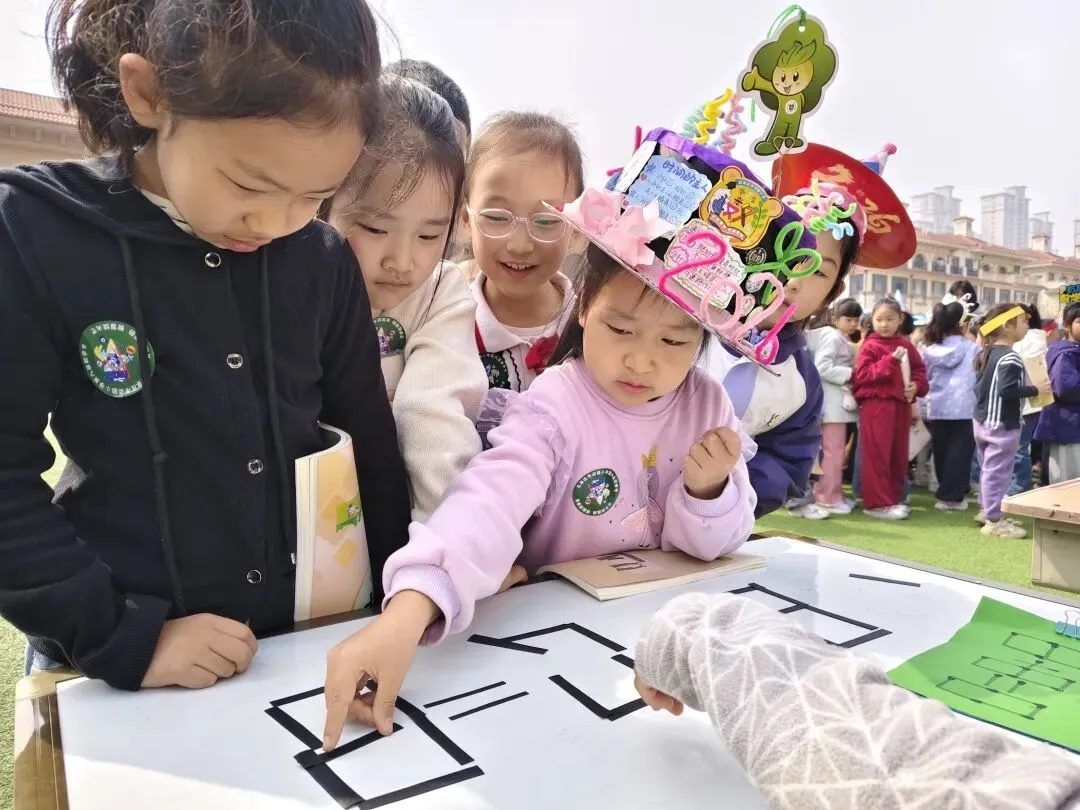 平行垂直大闯关以行走挑战感知线的特征,谁是主 “角”手拉手摆角解锁几何奥秘;一笔画探秘图形连通路径,感受空间几何的奇妙。