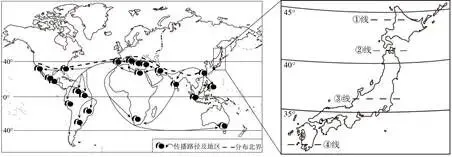 2. 右图中柑橘在日本分布最可能的北界是()