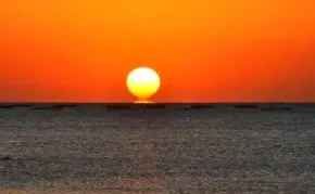 6. 上右图是某同学在丁地拍摄太阳照片(太阳位于海平面上),照片拍摄当天,太阳直射点最有可能位于
