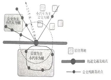 10. 针对图示区域接驳方式的特点,轨道交通站点附近应规划建设()