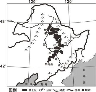 我国东北黑土是世界上肥力最高的土壤,黑土区是我国重要的商品粮基地。由于长期的开垦,黑土厚度由最初的80~100厘米,减少到20~30厘米,黑土有机质含量由12%下降到1%~2%。养护黑土成为东北商品粮基地的重中之重,吉林省四平市梨树县“梨树模式”应运而生。“梨树模式”是在玉米种植过程中秸秆全部还田并覆盖地表,将耕作次数减少到最少,田间生产环节全部实现机械化的农业生产模式。下图示意我国黑土分布及梨树县位置。