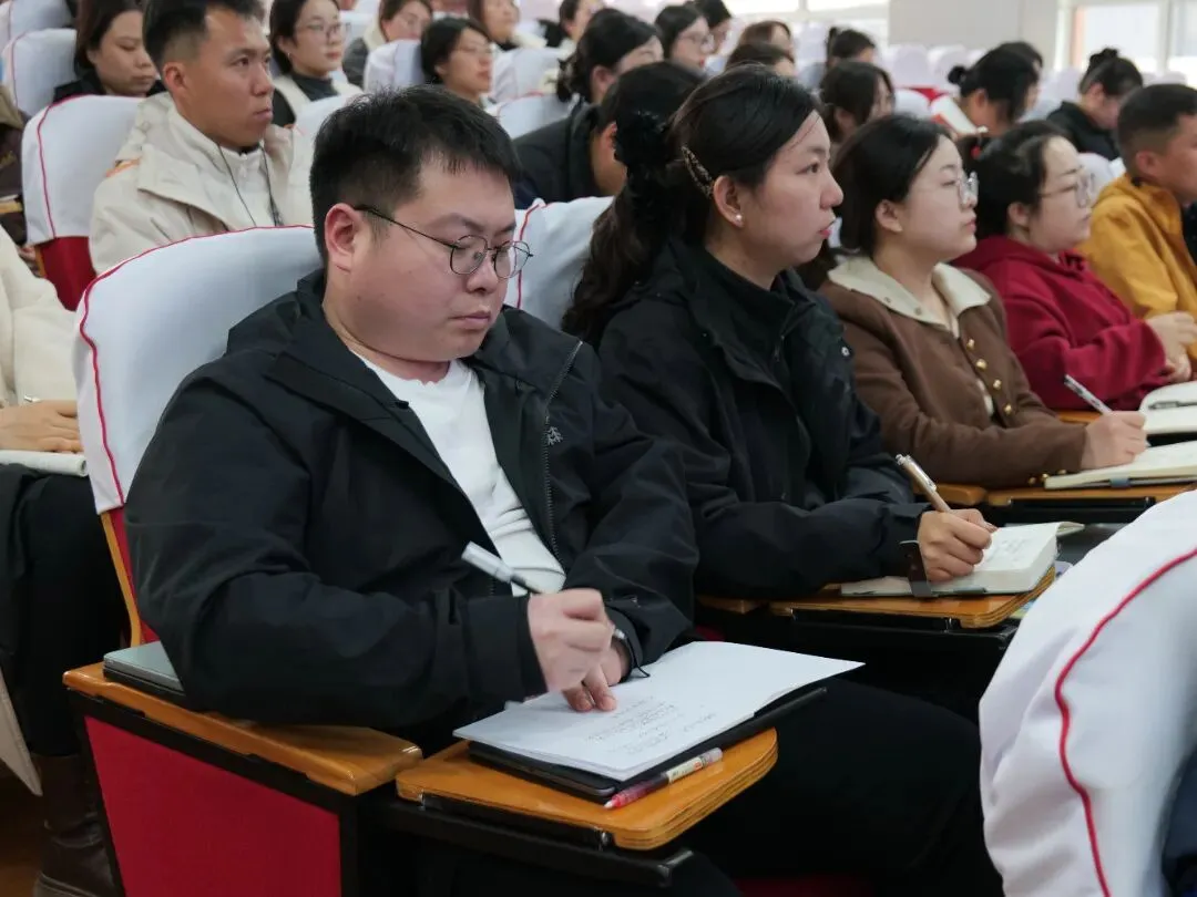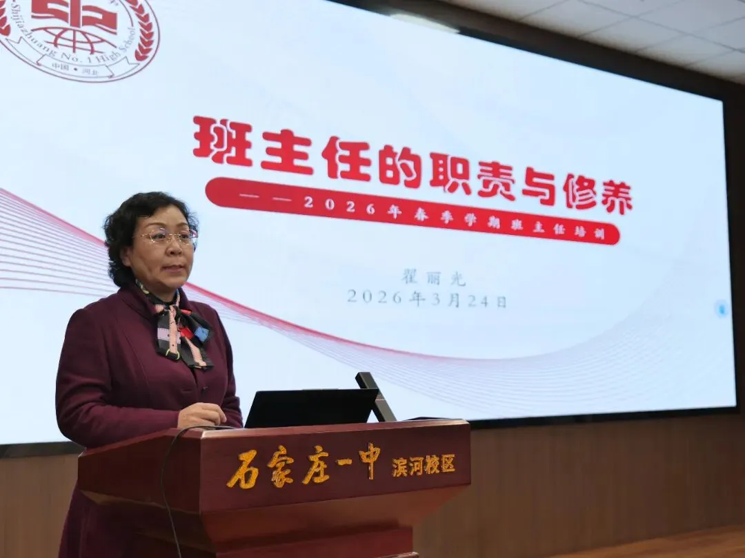 聚力强师能,同心育新人。为全面提升班主任队伍专业素养与育人实效,3月24日,石家庄一中滨河校区召开全校班主任工作会。石家庄一中党委委员、滨河校区执行校长翟丽光以“班主任的职责与修养”为题,为全体班主任作专题培训,明晰德育工作方向,传授班级管理方法。会议由高二级部主任刘海涛主持。