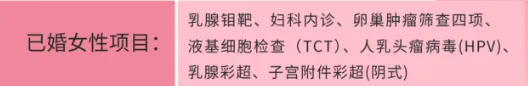 涵盖妇科检查、HPV+TCT联合筛查、乳腺钼靶、卵巢肿瘤筛查、妇科彩超(经阴),全面守护女性健康。