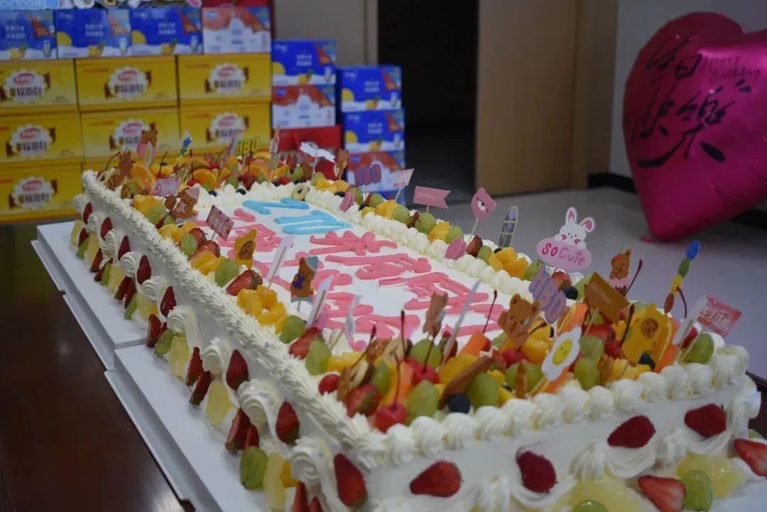 伴随着温馨的生日歌,大家一同分享蛋糕,香甜的蛋糕承载着公司的美好祝福,暖心的礼品传递着企业的真切关怀。