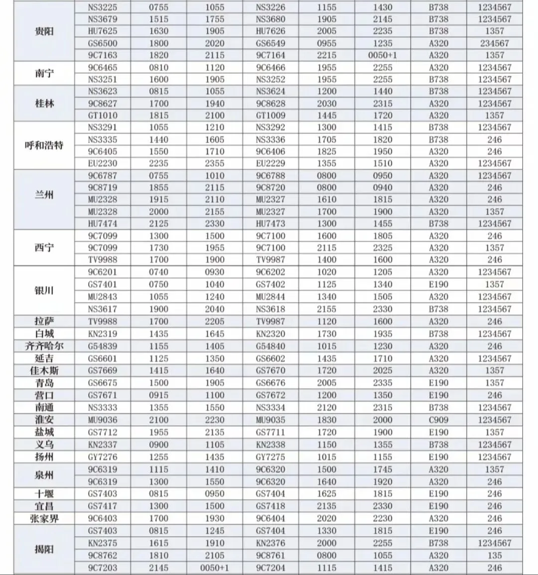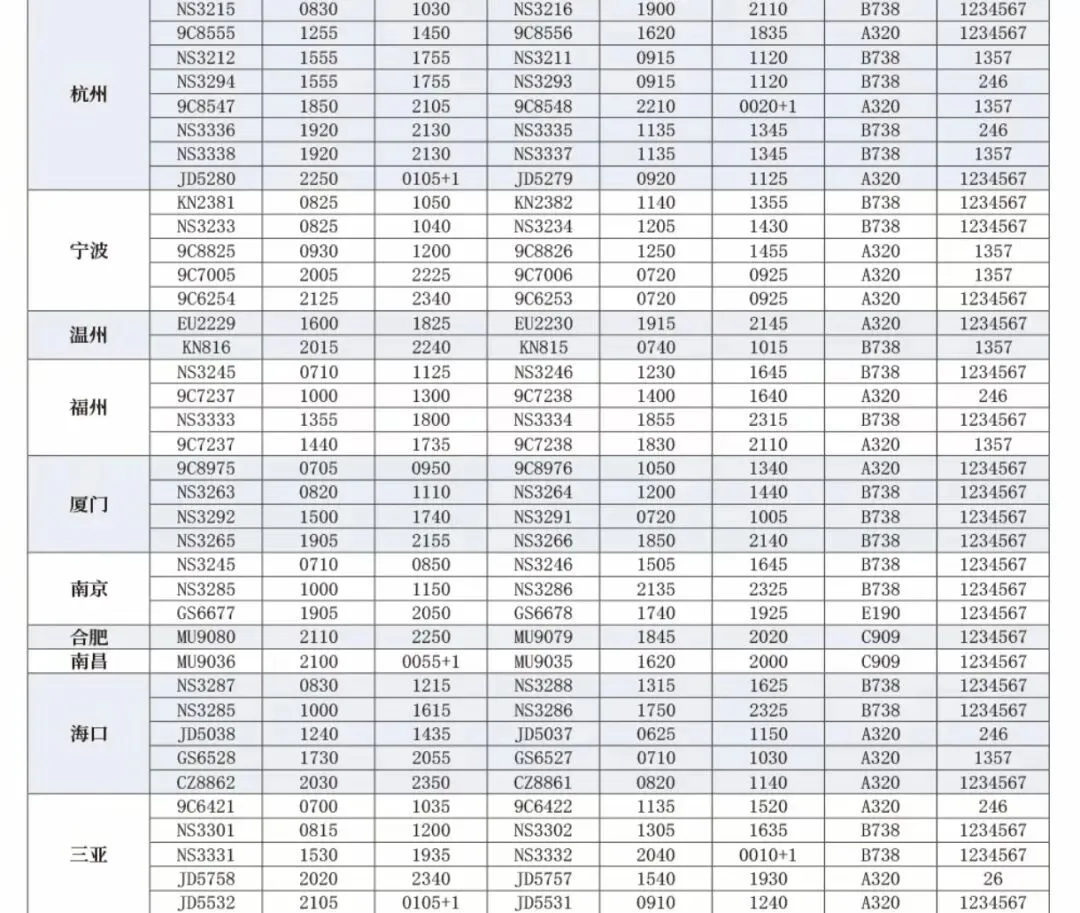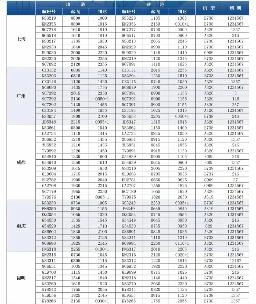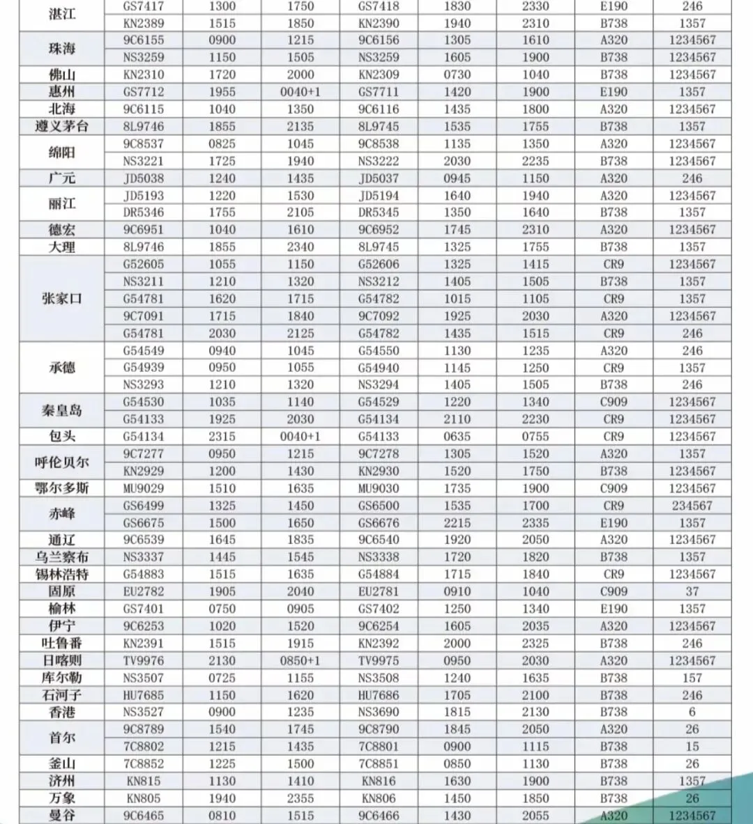 【信息转载】石家庄正定国际机场2026年夏航季航班时刻表
