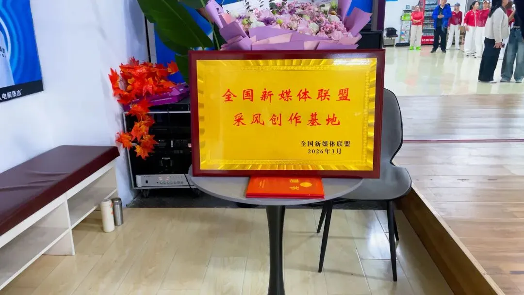 揭牌仪式环节,全国新媒体人联谊会主席郝小学、领翔燃脂迪吧总经理曾小玲与现场嘉宾共同上前,缓缓揭下牌匾上的红绸,“采风创作基地”牌匾正式亮相,现场响起热烈掌声。这也标志着领翔燃脂迪吧正式成为全国新媒体联盟的重要采风创作阵地,开启了媒企协同推广全民健身、传播体育文化的新篇章。