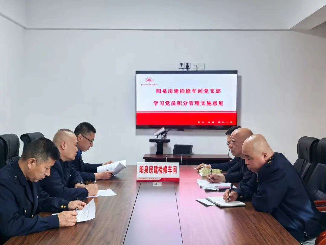 阳泉房建检修车间党支部组织党小组长学习党员积分管理办法,严格落实积分考核要求,提升党员教育管理监督质效,激发党员发挥先锋模范作用,打造高质量党员队伍。(孙钰婧)