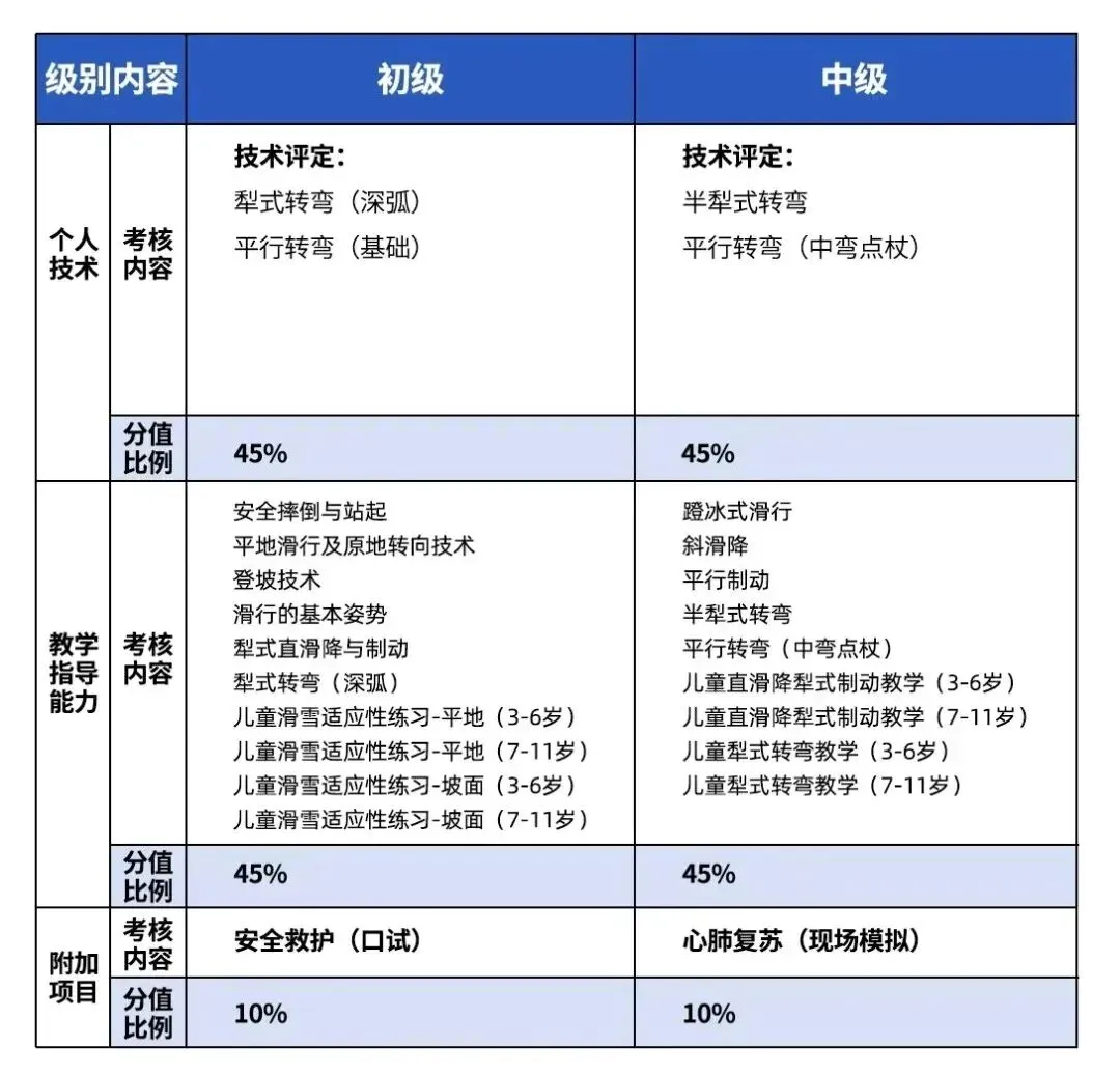 注:附加项目为滑雪(双板)、(单板)指导员考核实施细则(2023版)最新调整。