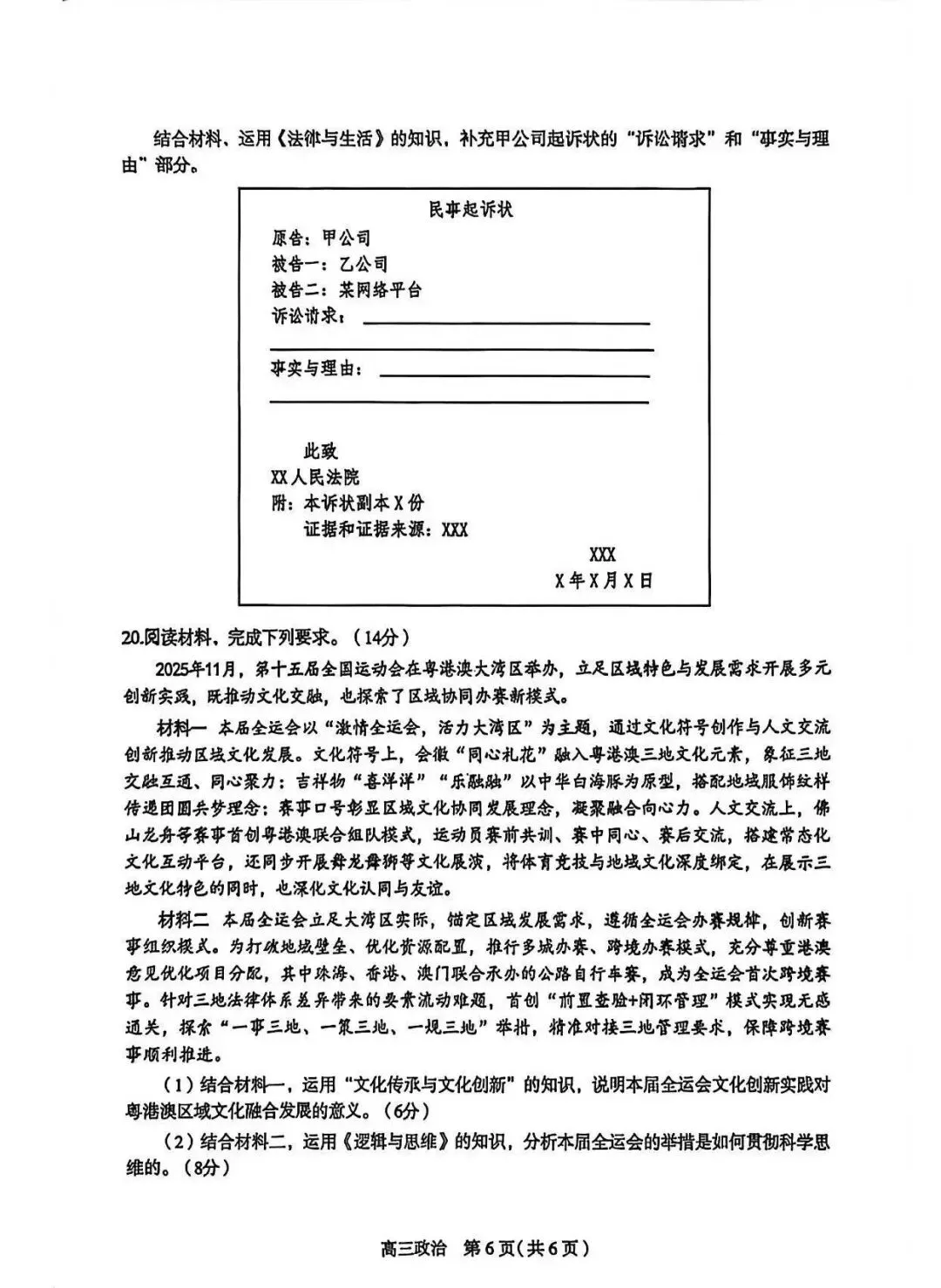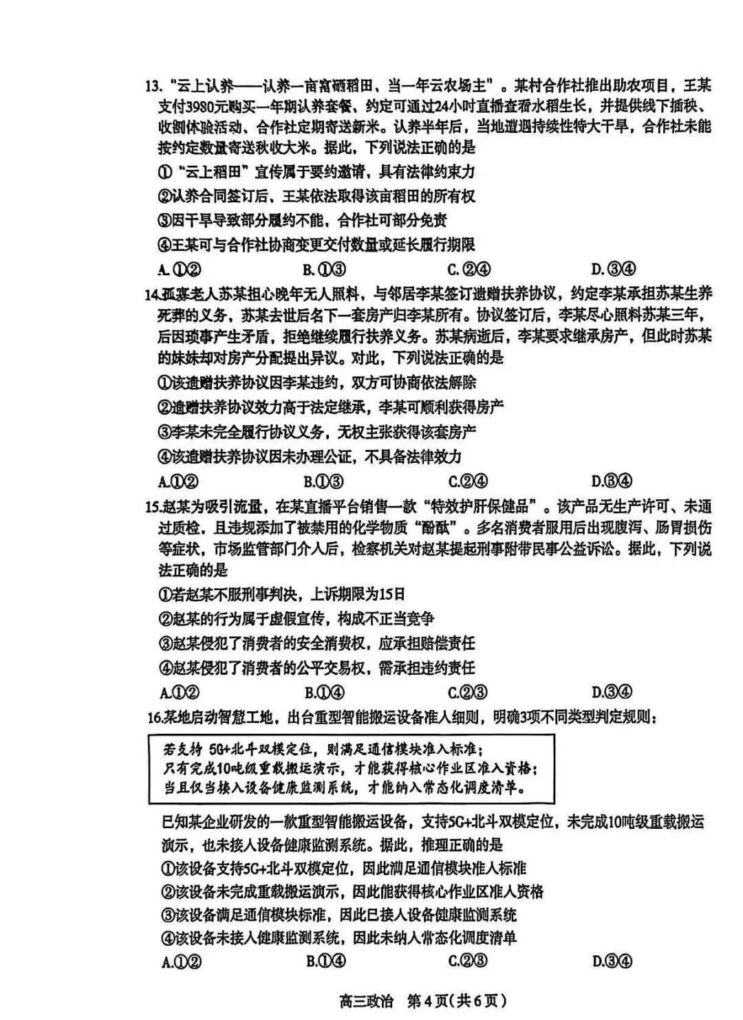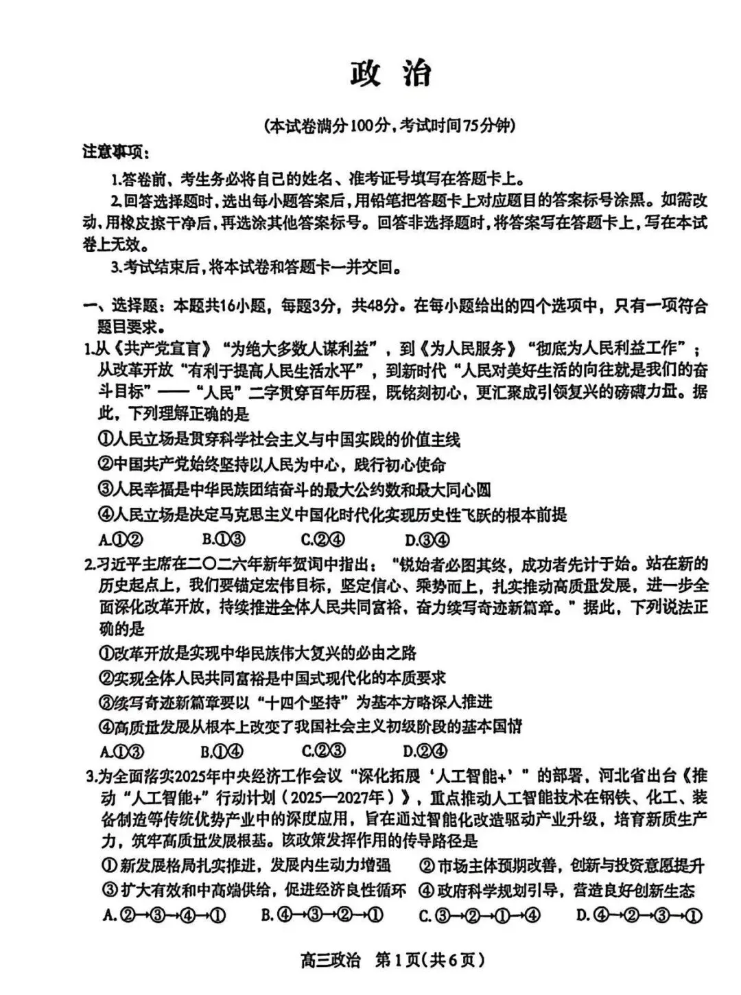 >2026年石家庄市高三一模政治(质检一)