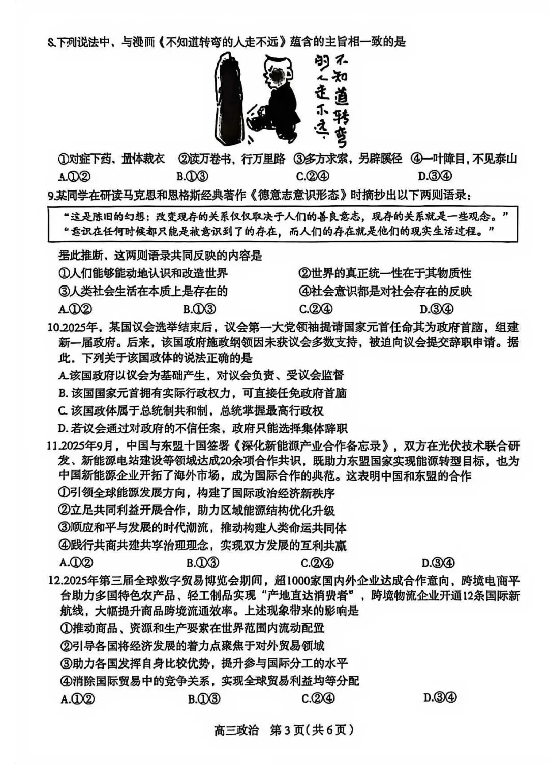 2026年石家庄市高三一模政治(质检一)