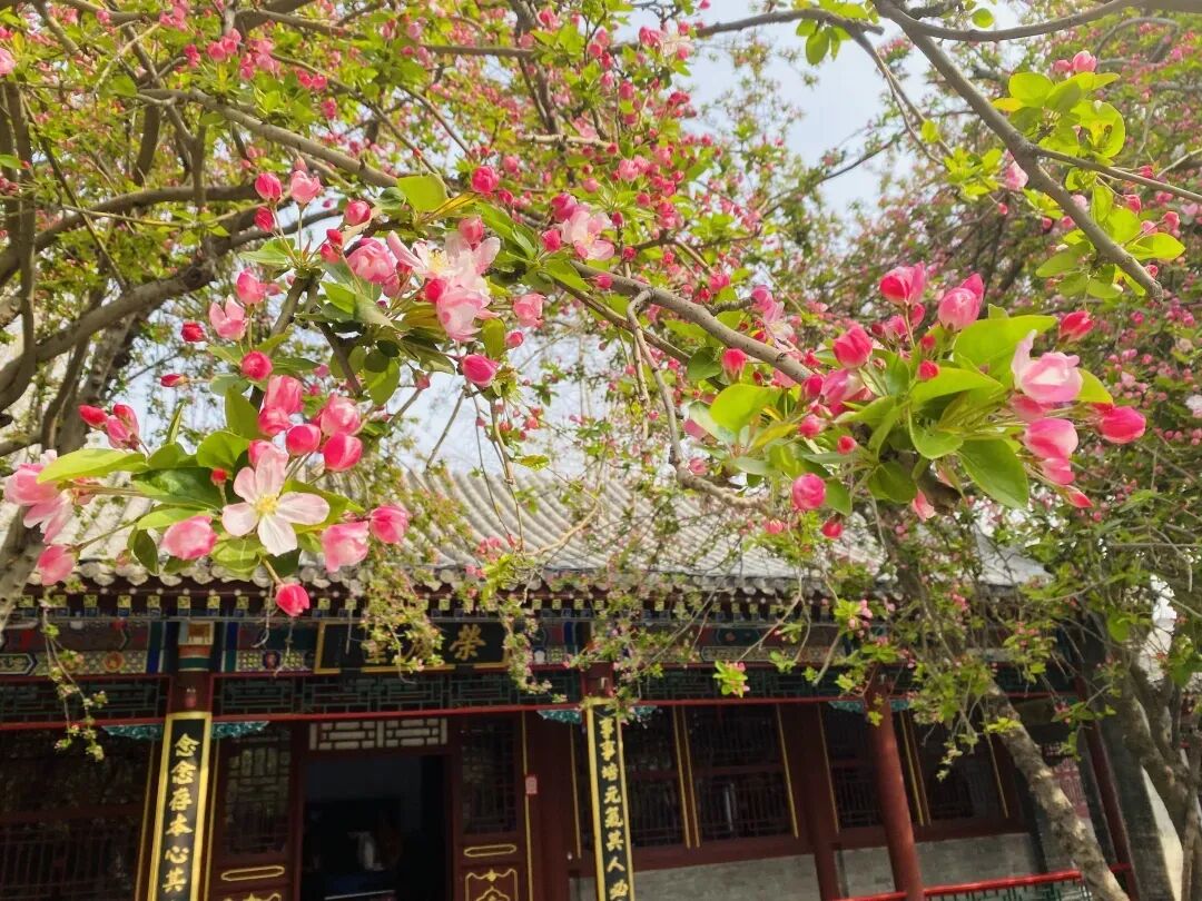 朱墙黛瓦映春色,海棠吐艳,玉兰飘香
