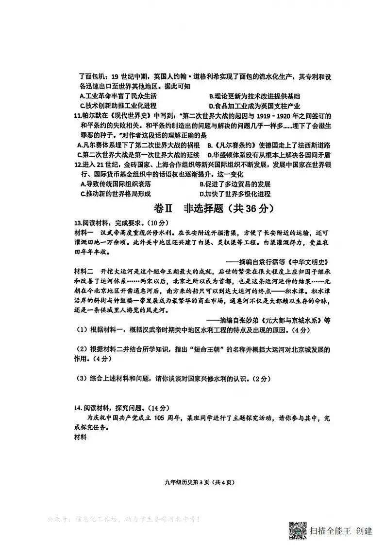 (一)夸克网盘分享了「【0327】2026年3月石家庄桥西区初中学业水平质量监测九年级历史+答案」,链接:https://pan.quark.cn/s/262197cbc0a0