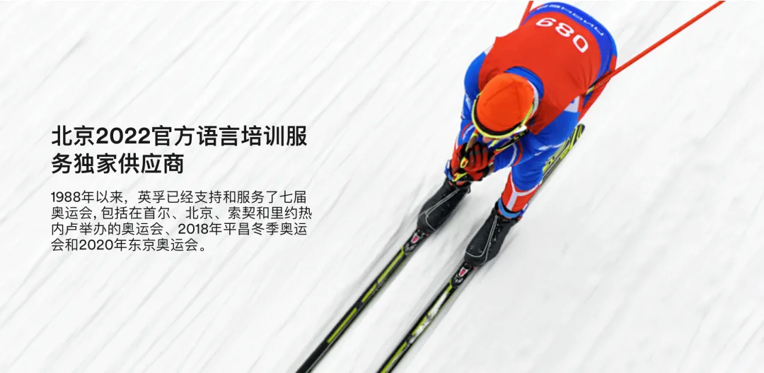 而英孚教育,正是北京2022年冬奥会和冬残奥会官方语言培训服务独家供应商——从1988年汉城奥运会到2022年北京冬奥会,英孚已7次成为奥运会官方合作伙伴,以语言为桥梁,助力国际盛会的顺利举办。