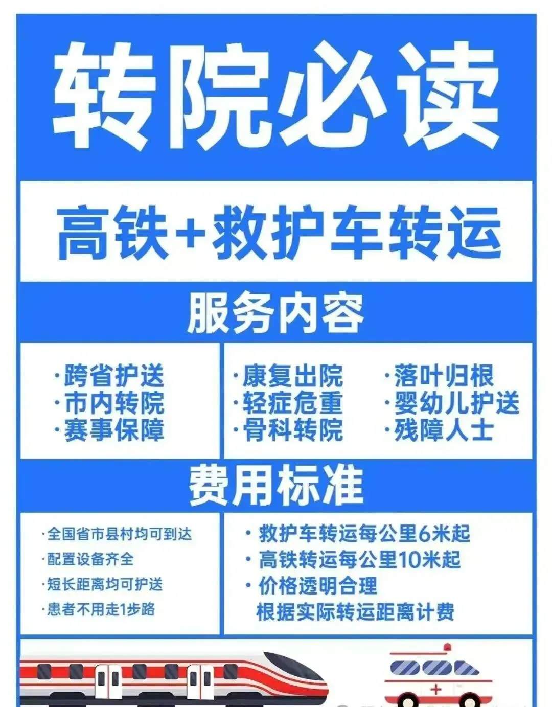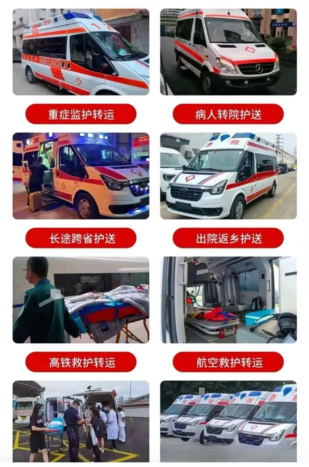 ✅资质正规:卫健委备案,120联动单位,执行院前急救标准✅团队专业:医生+护士+司机均持执业证,定期参与急救培训✅服务定制:根据病情设计路线、配备设备支持高铁/机场对接