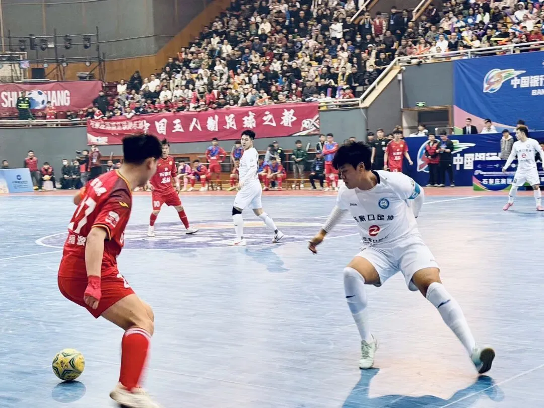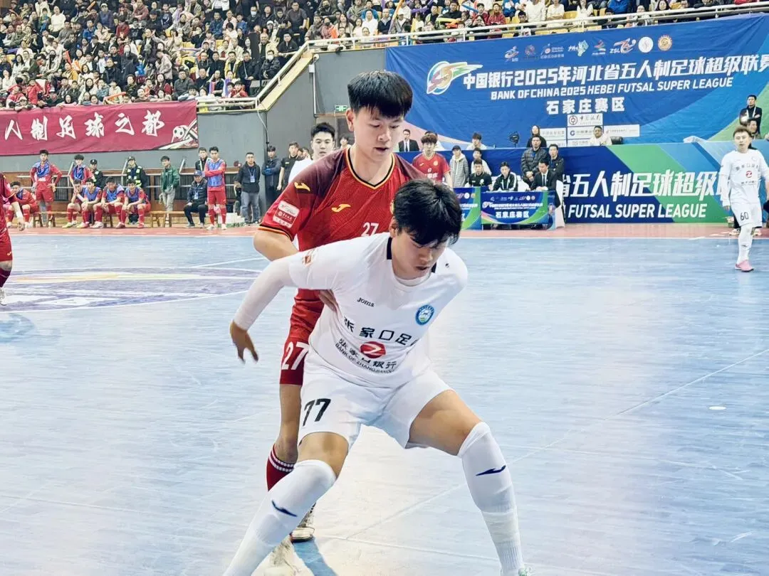 3月28日,“河北五超” 半决赛次回合的较量在石家庄赛区打响,张家口队远赴客场挑战石家庄队。凭借全队上下的顽强斗志与默契的团队韧性,张家口队以3:3的比分与对手握手言和,两回合总比分定格在8:6,成功挺进河北省五人制超级联赛决赛。