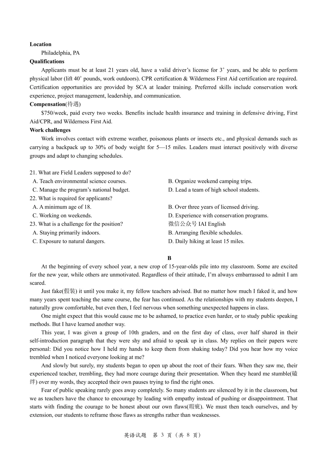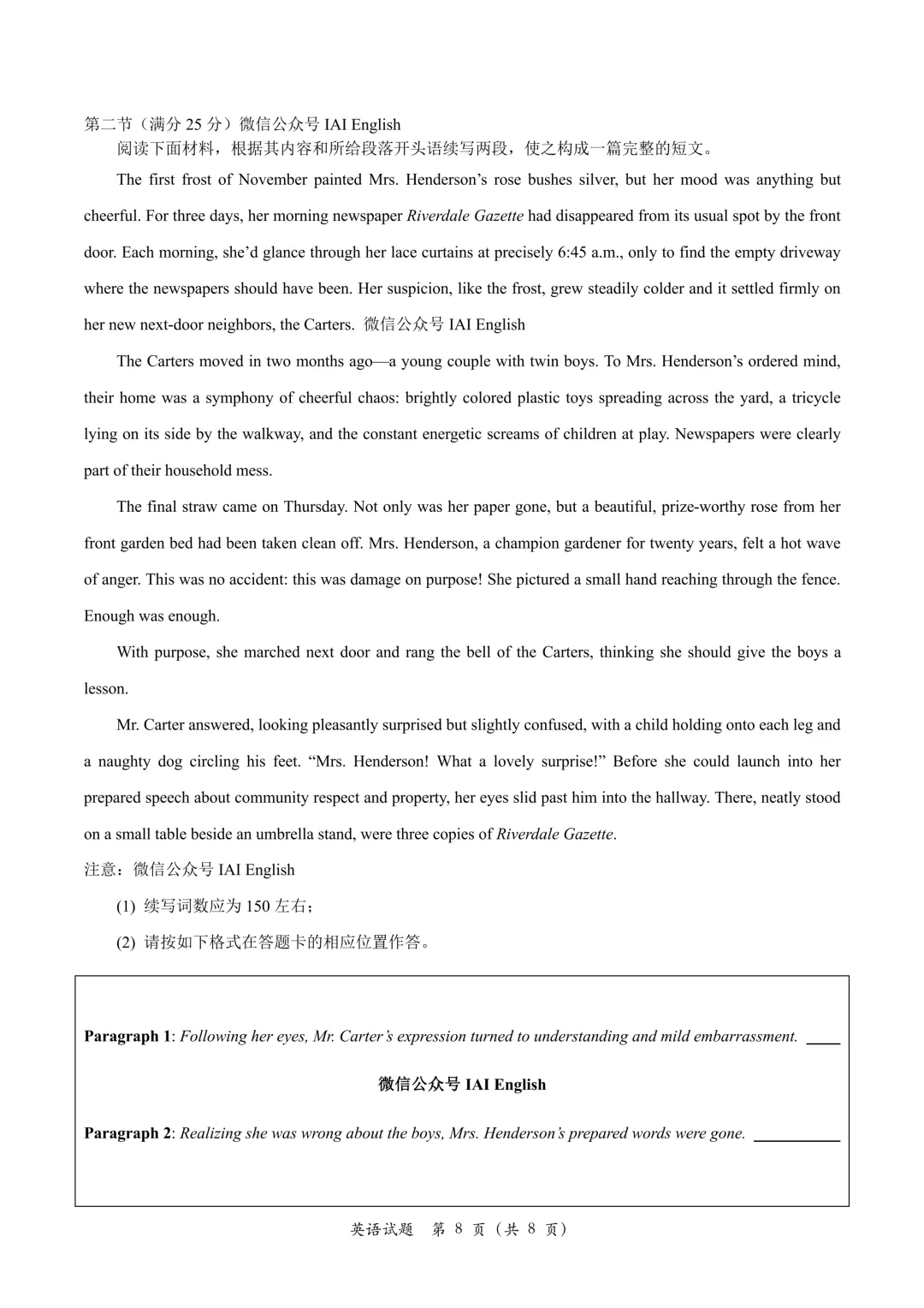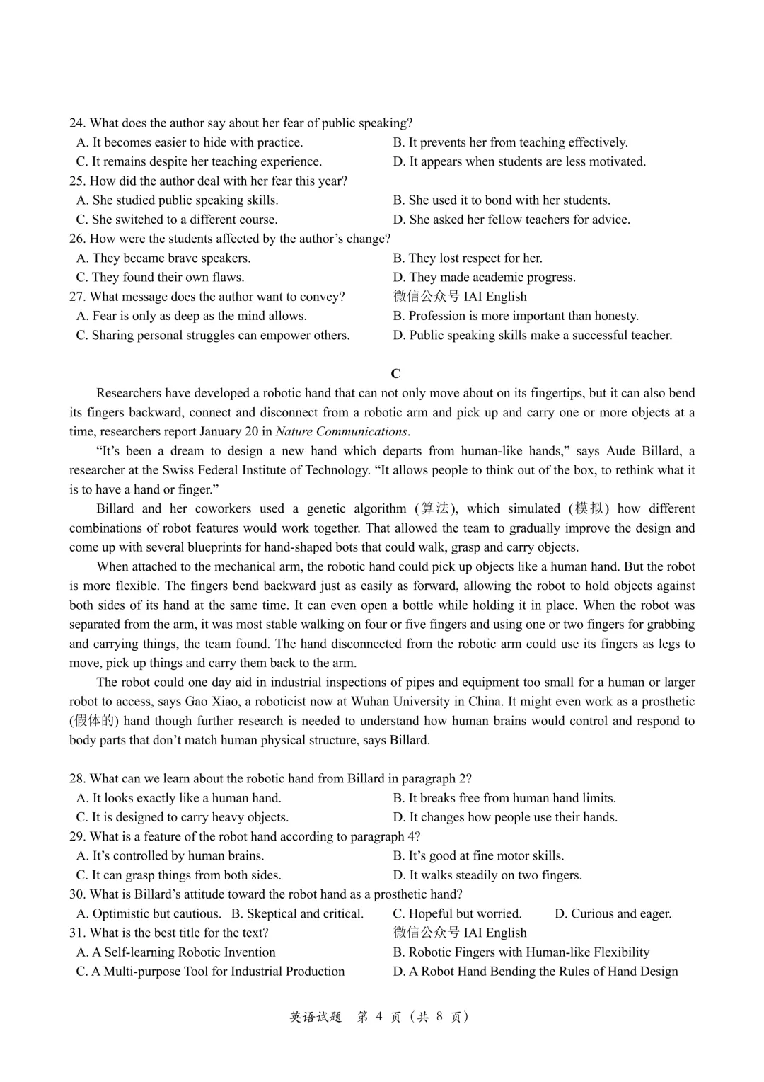【2026模拟题】420.石家庄市高三教学质量检测(一)英语试题+答案