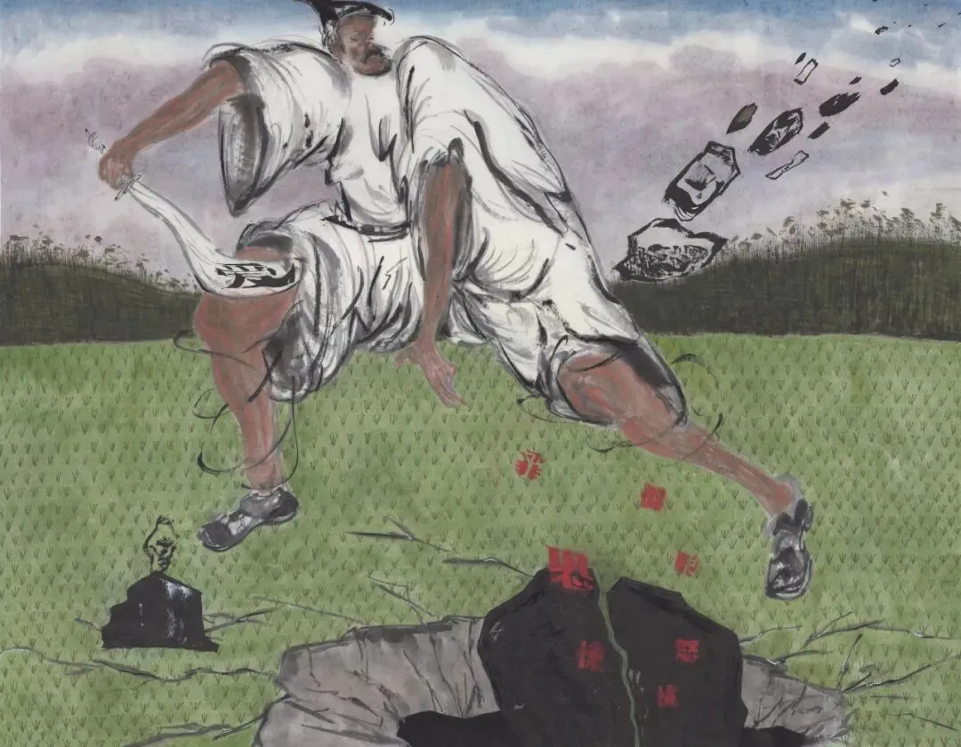 绘画本身就是很自由的事情,凭什么国画只能“惠风和畅”“翰墨飘香”,传统要有面对真实的勇气,宣纸不能只能承受诗情画意,也应该承受住我那些“石头”的重量。疼痛和黑暗需要被看见,一个时代如果只有一个表情,那一定是病了。不甘的诚实的勇敢的艺术家就是良药。