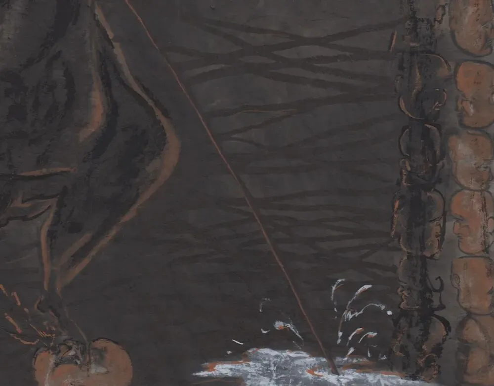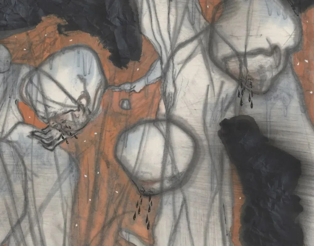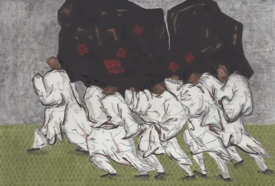你早期的作品偏表达个人困境,画面情绪化,笔墨粗旷厚重,人物形象释放夸张。到了2025年开始慢慢转向描述人类集体困境,画面加入极强的叙事性,甚至是一场哲学思辨,塑造方式变得克制理性。这个过程中是什么样的境遇带来创作上的变化?
