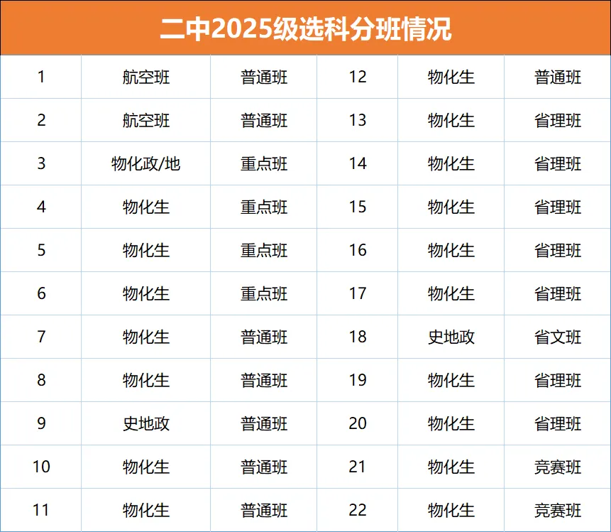 二中班型整体基本不流动,高中三年保持中考确定的班次,仅在“分科”时存在调整