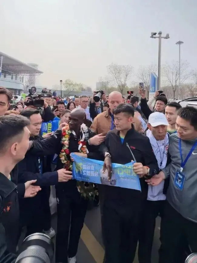 石家庄接基普乔格,机场欢迎、媒体跟拍、话题迅速拉满。