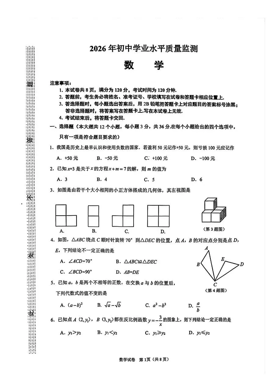 >2026.3石家庄桥西数学模拟试题